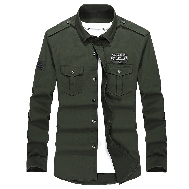 가을 2021 새로운 남자의 캐주얼 긴 소매 셔츠 공군 하나 순면 슬림 군사 플러스 사이즈 탑스토어 가기