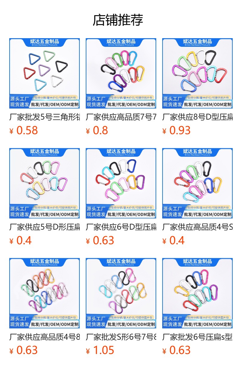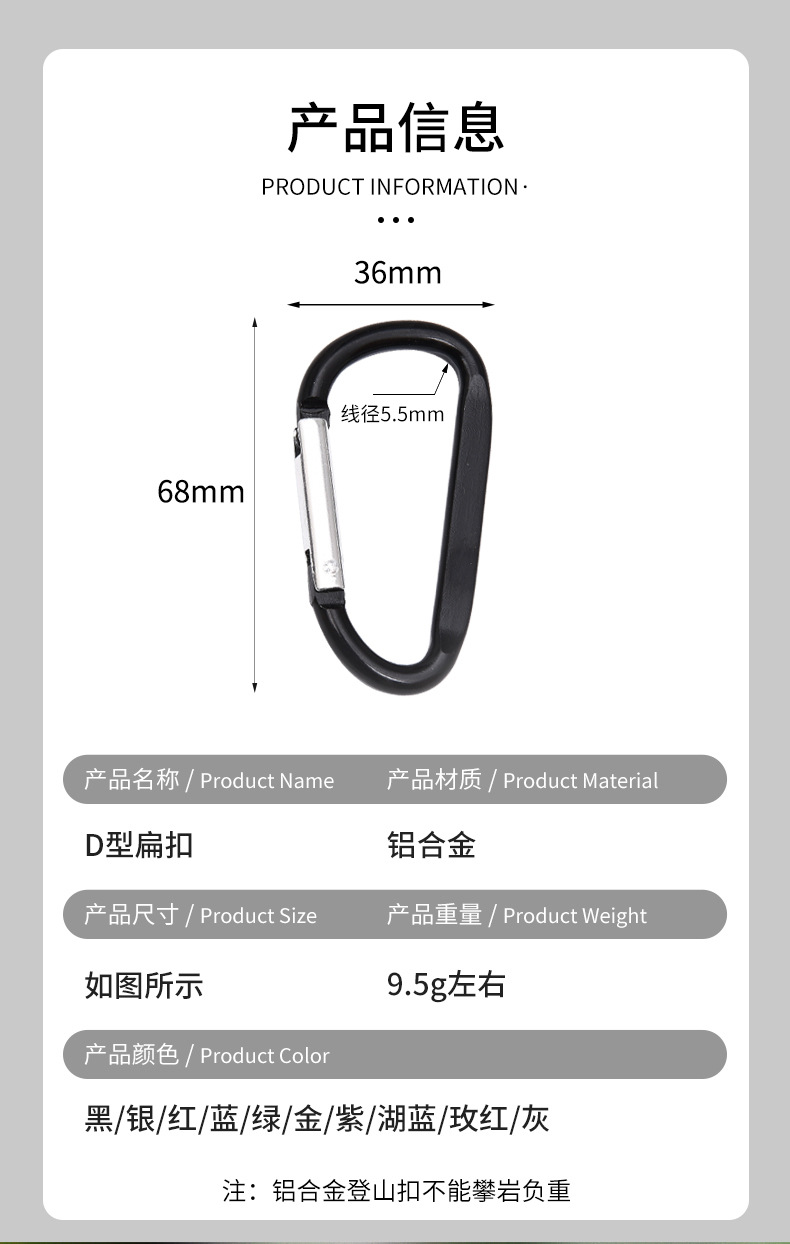 제조업체는 No. 7 D 자형 평평한 알루미늄 합금 등산 버클 야외 안전 버클 하트 버클 도매 배낭 후크를 공급합니다.스토어 가기