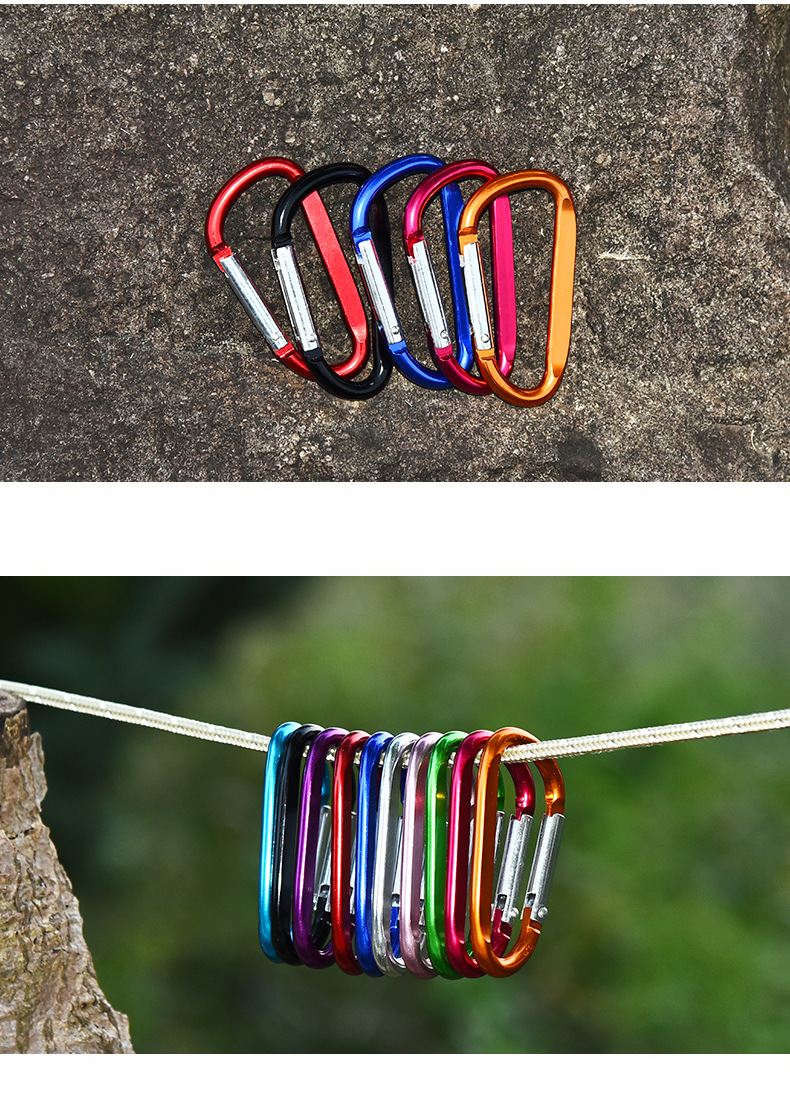 제조업체는 No. 7 D 자형 평평한 알루미늄 합금 등산 버클 야외 안전 버클 하트 버클 도매 배낭 후크를 공급합니다.