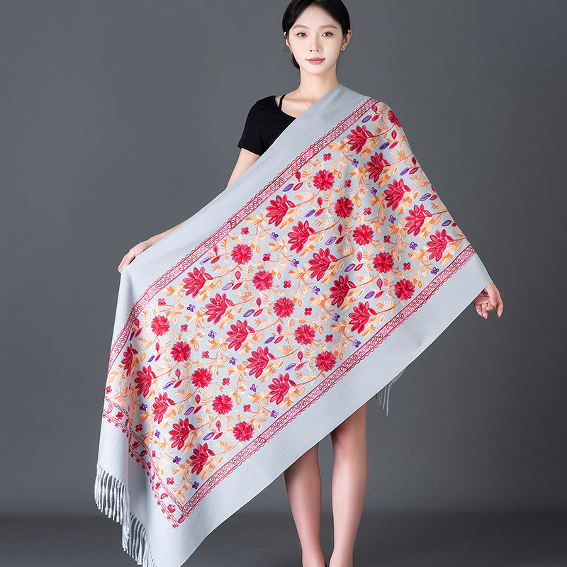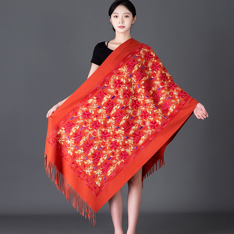 가을 겨울 신상 여성 자수 모조 캐시미어 스카프, 민족 스타일, 다용도, 중년 어머니 자수 두꺼운 따뜻한 대형 숄