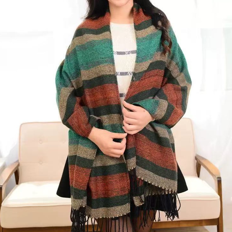 韩版韩国秋冬天女士羊绒毛线围脖 披肩两用超长格子围巾 围巾批发(加大号仿羊绒格子围巾)
