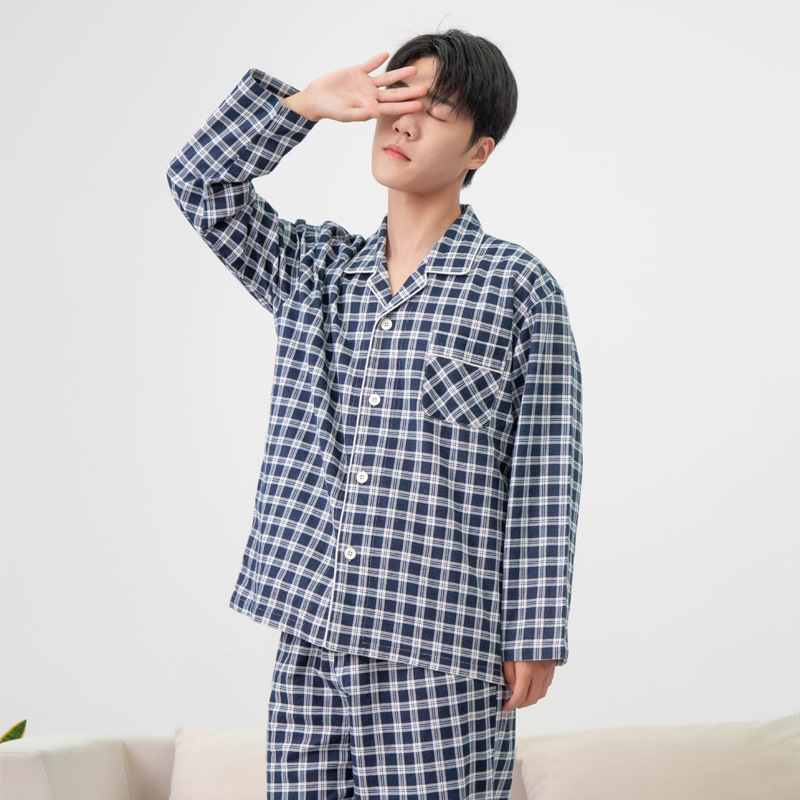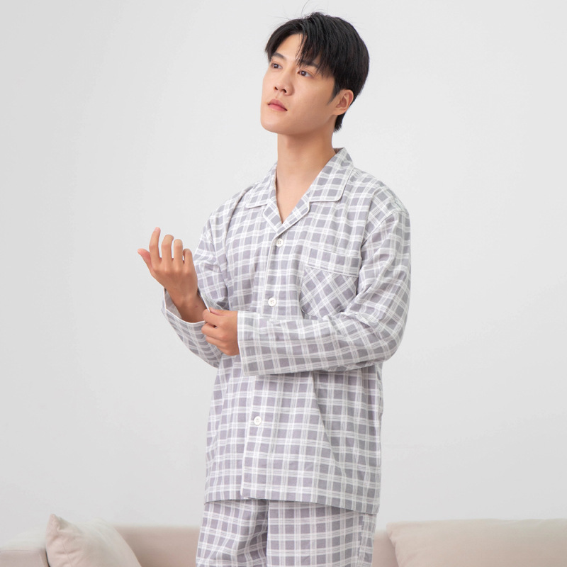 잠옷 남성 잠옷 면화 가을 봄 플란넬 가을과 겨울 샌딩 두꺼운면 Nantong 비 인쇄 가정 의류 도매스토어 가기