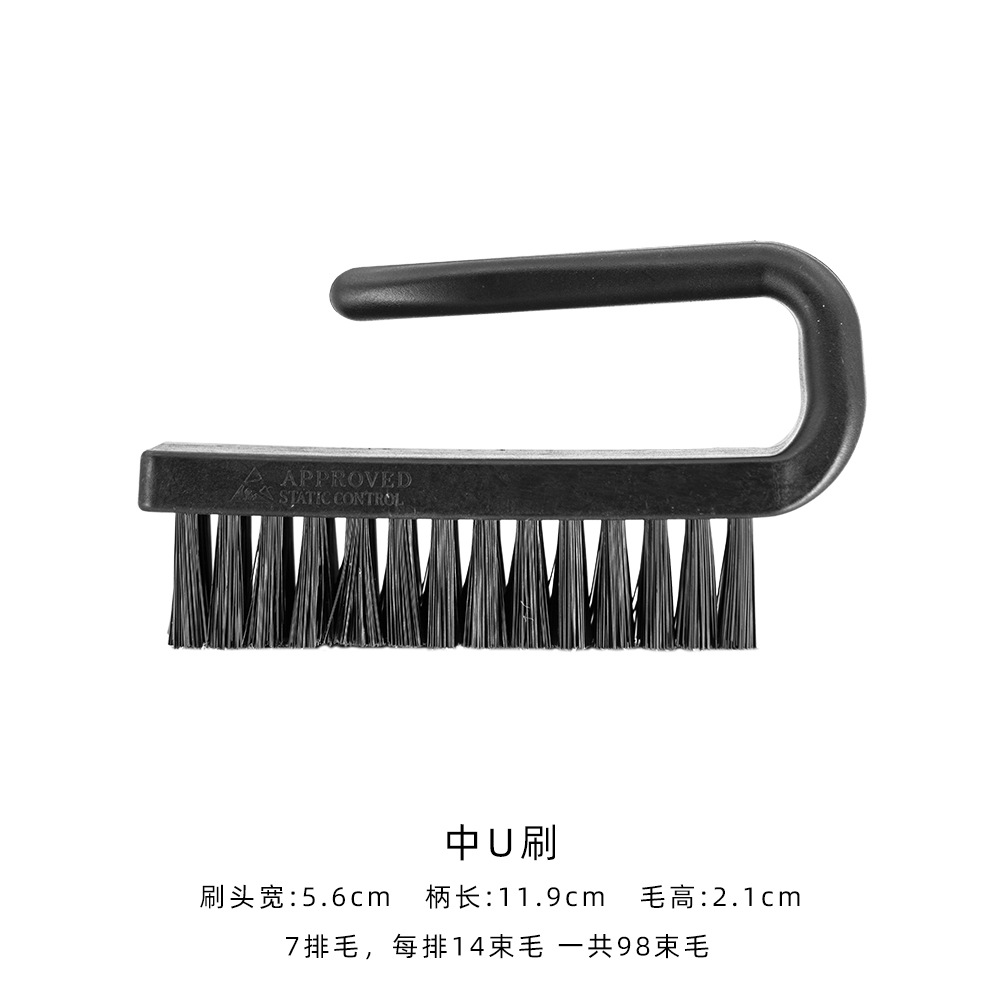 防静电毛刷采用碳、纤维合成塑胶加工而成,具有一定的硬性和韧性,经久耐用,使用方便,操作灵活。适用于SMD及PCB板的表面污物清理,产生的静电可泄放大地。产品适用于清洁各元器件,弹性毛刷不损坏元器件。