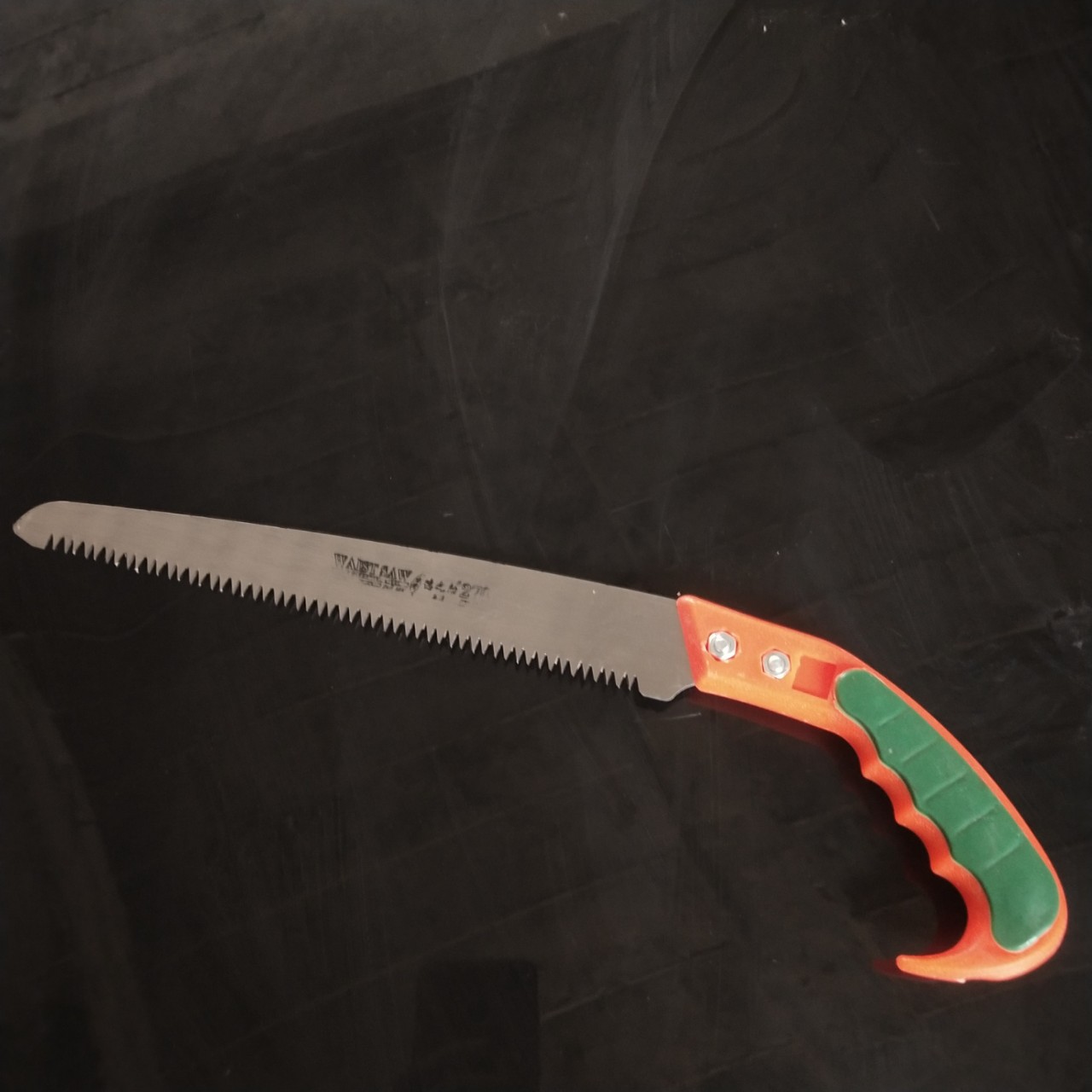 优质双色柄果树锯,手柄采用pvc注塑而成,钢板采用50#钢锻压而成,经过机器三面磨齿,锋利。
