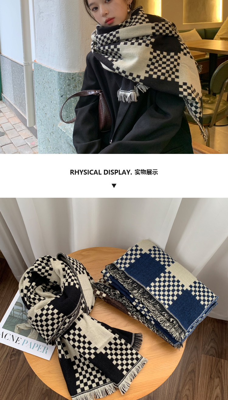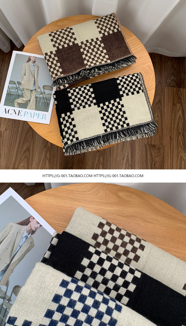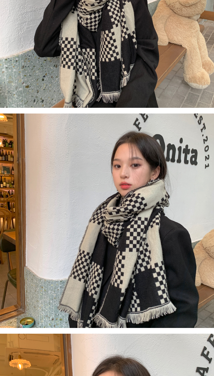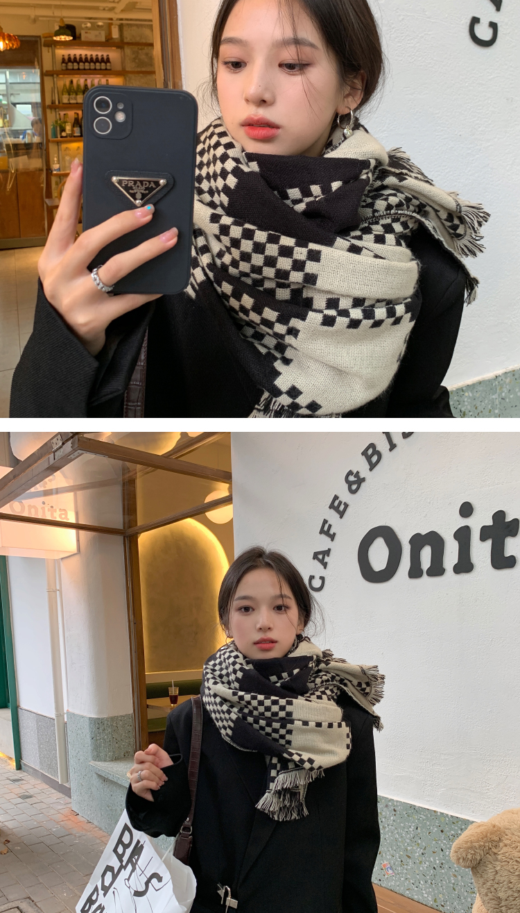 고급 체스 판 격자 무늬 스카프 여성의 한국 가을과 겨울 신상품 큰 브랜드 팬 따뜻한 한국 스타일 숄 스카프스토어 가기