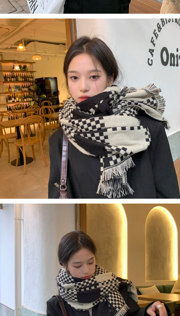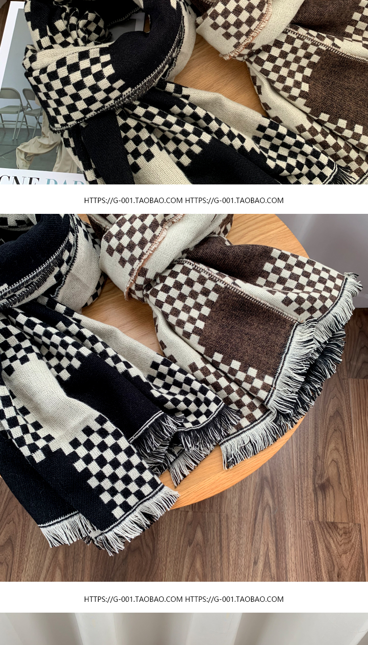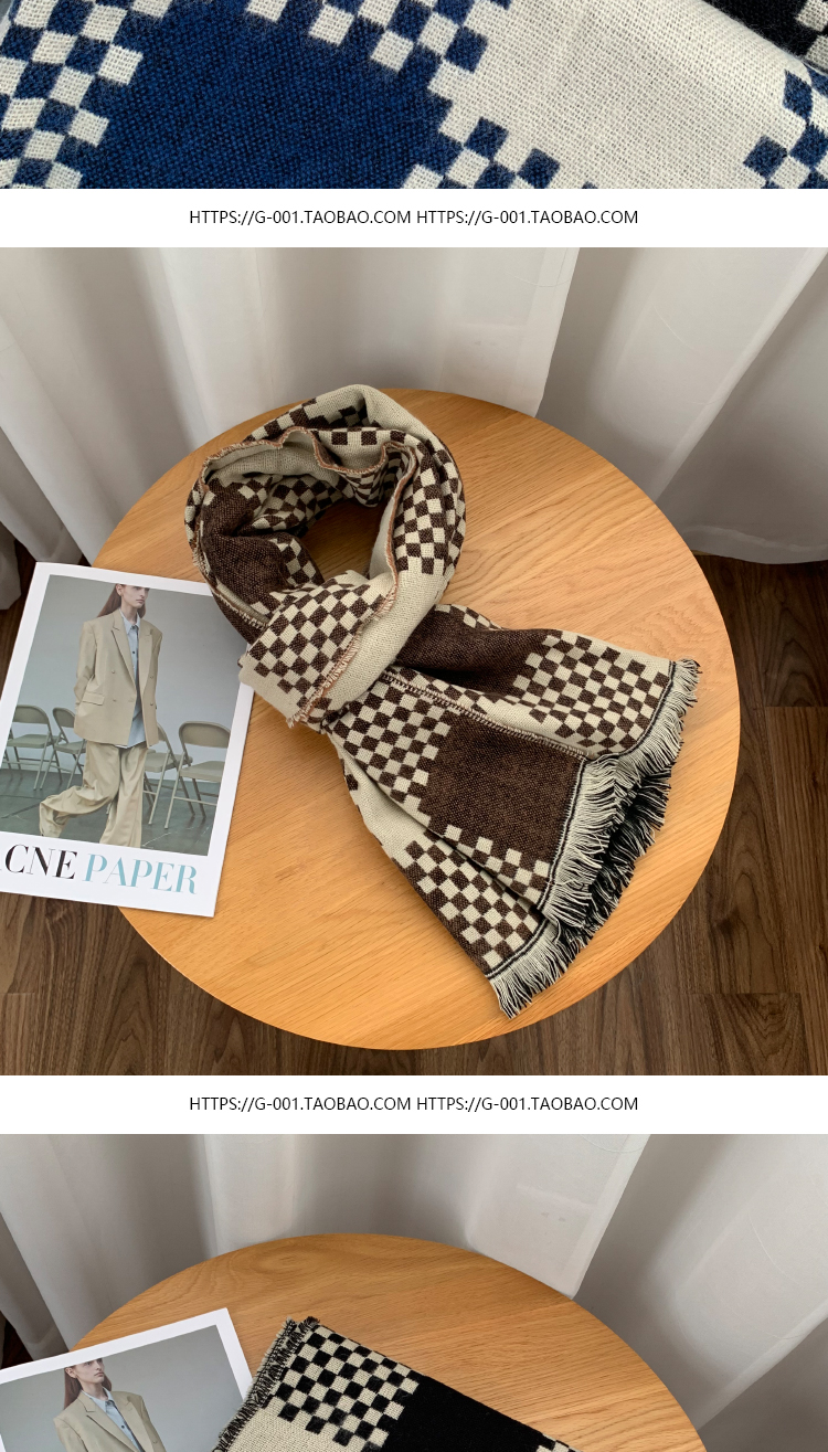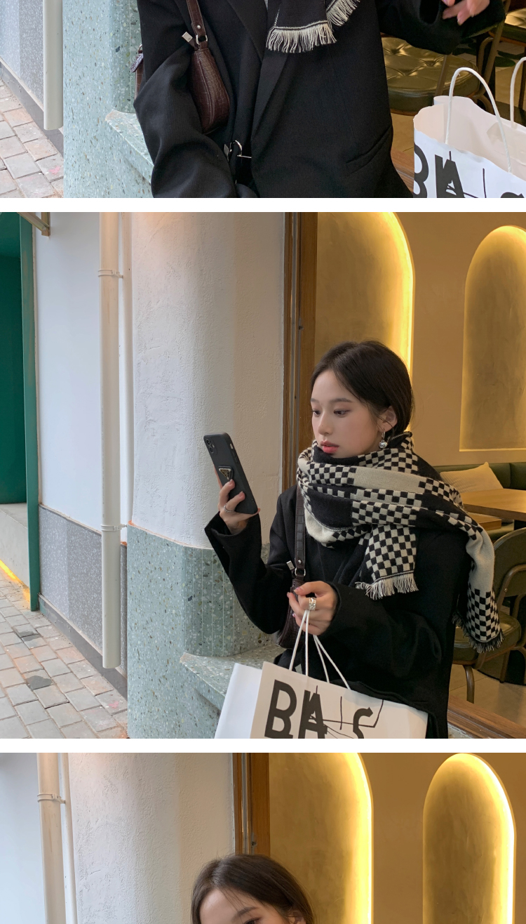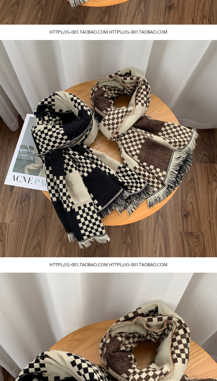 고급 체스 판 격자 무늬 스카프 여성의 한국 가을과 겨울 신상품 큰 브랜드 팬 따뜻한 한국 스타일 숄 스카프스토어 가기