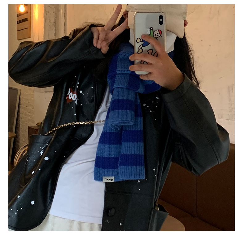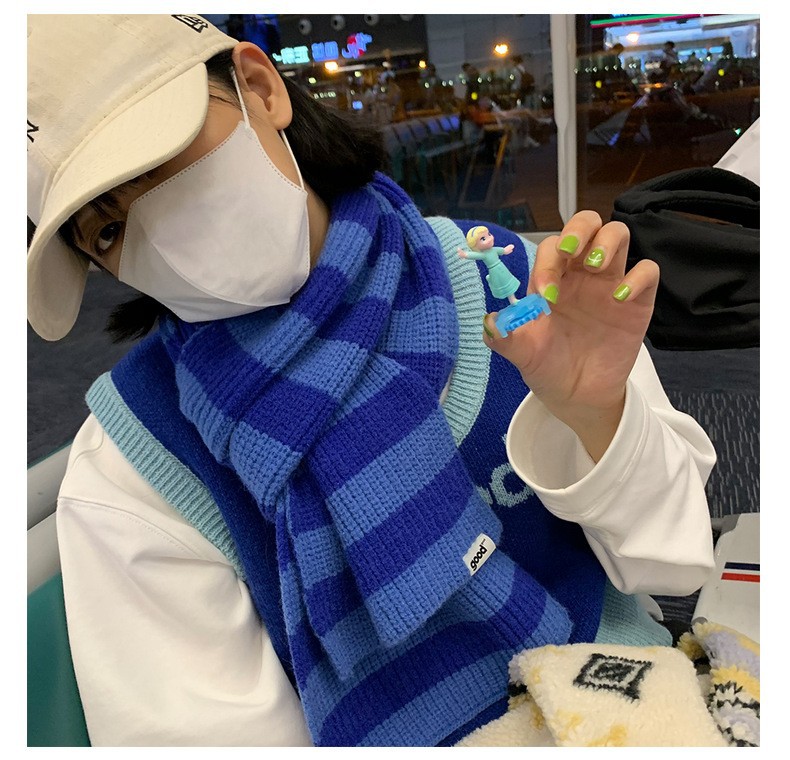 새로운 블루 대비 컬러 스트라이프 스카프 여성용 남성용 두껍고 길어진 따뜻한 부드러운 왁스 레트로 바이 스카프
