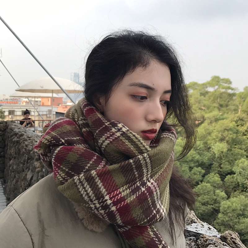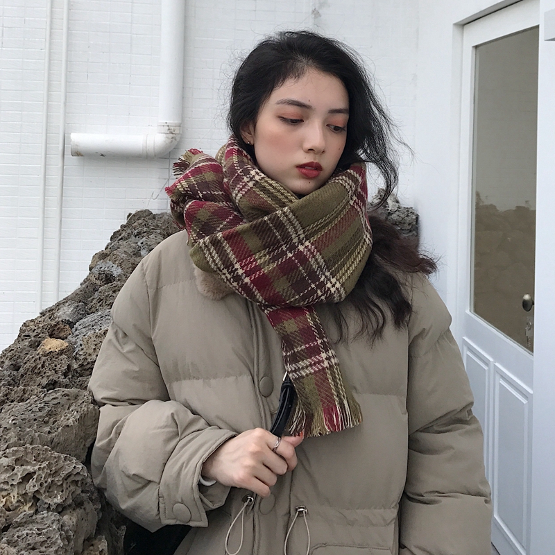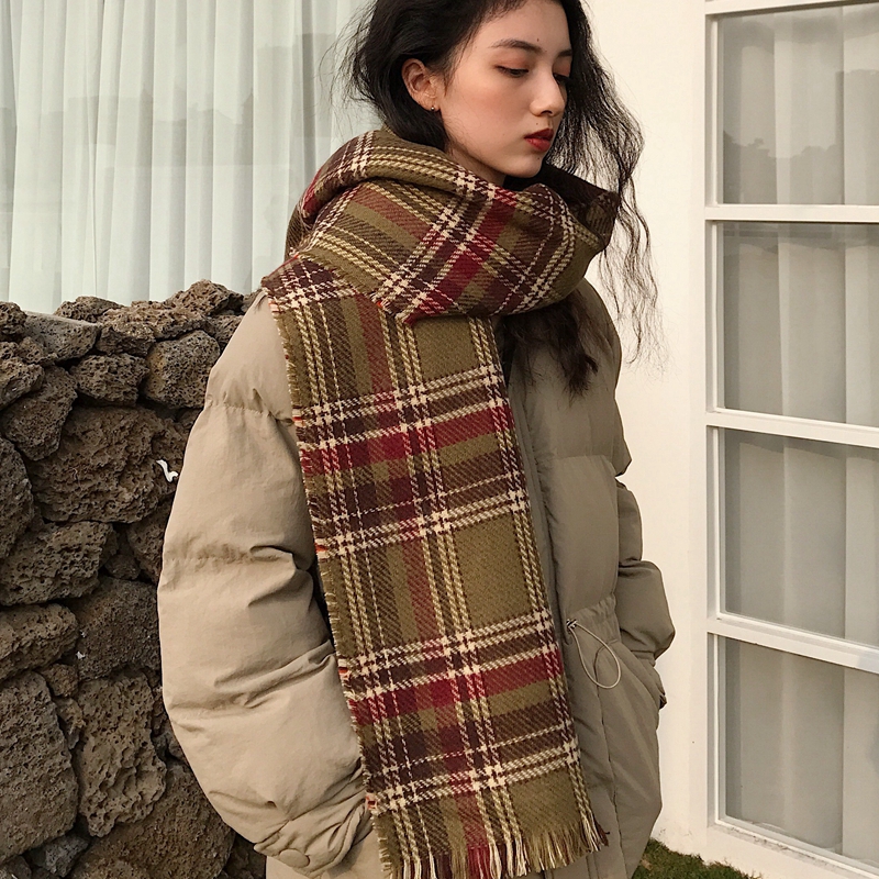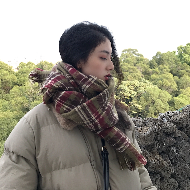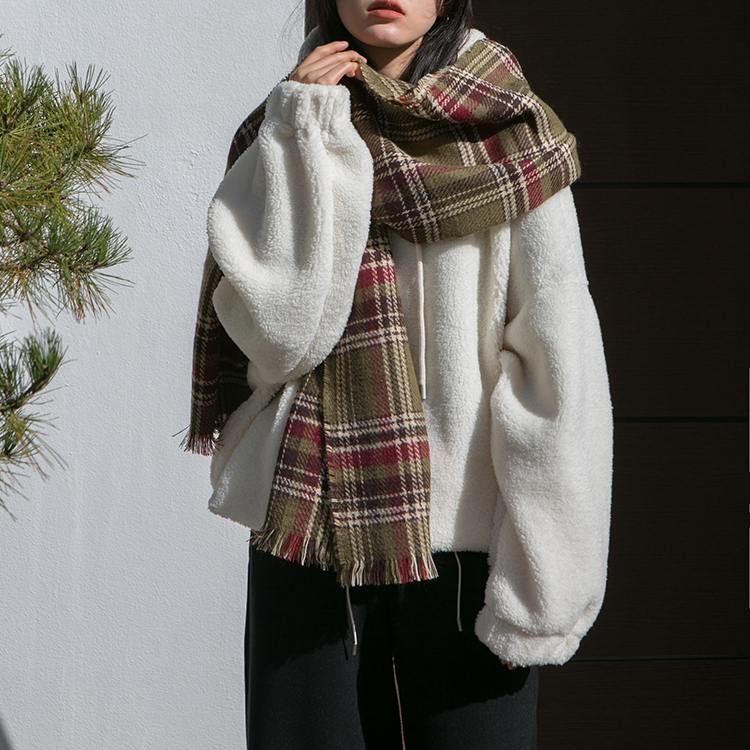 한국 상품이에요! 멋진 카키 컬러 술 격자 무늬 스카프 이스트 게이트 좋은 판매 양면 컬러 격자 무늬 목도리스토어 가기