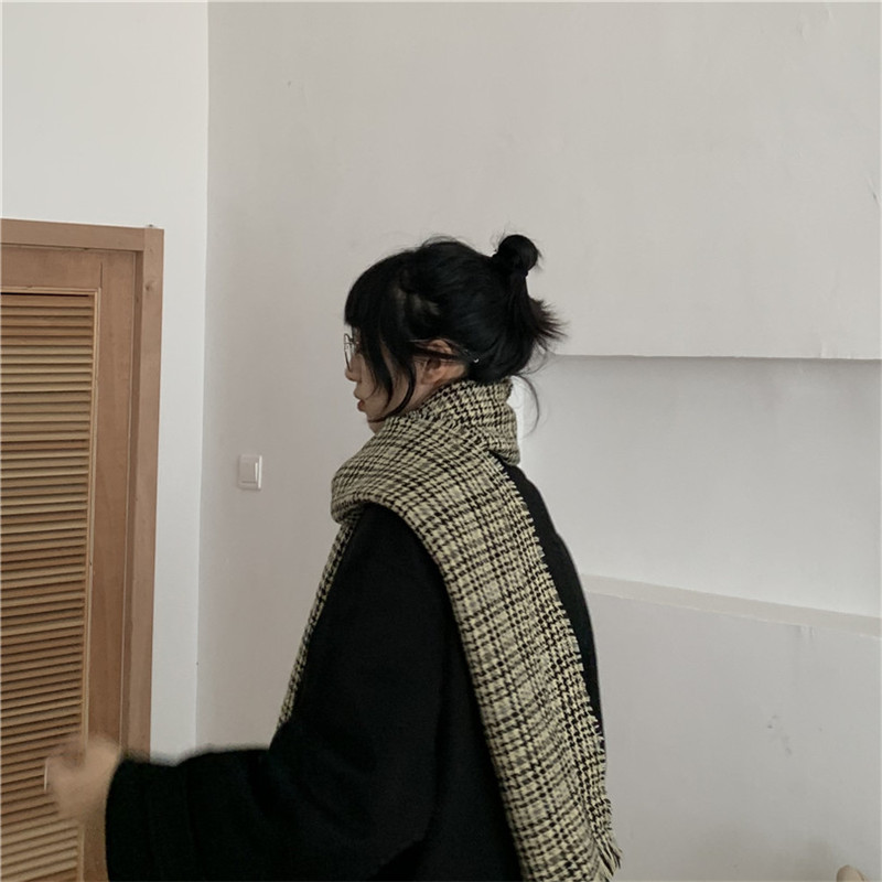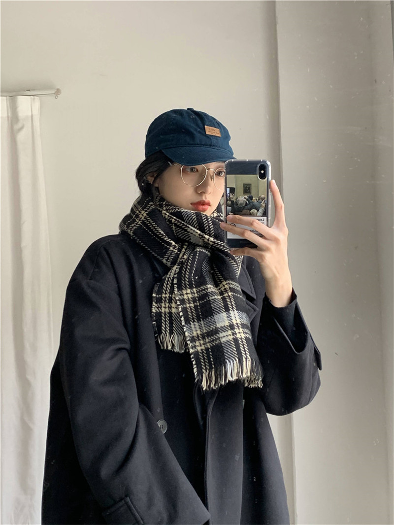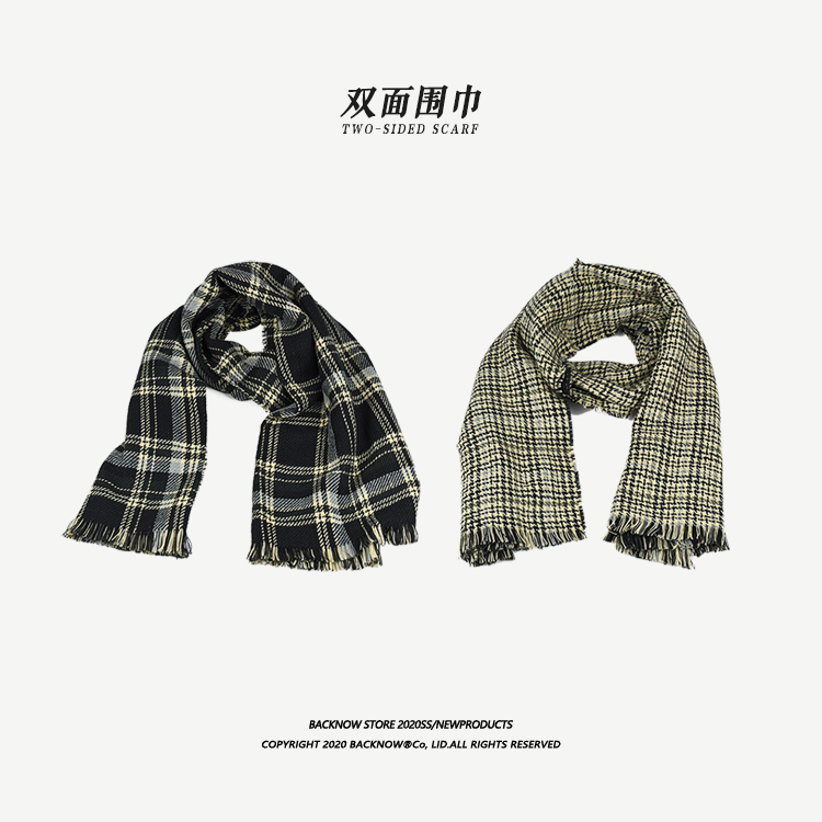 Bnow 기질 격자 무늬 빈티지 캐시미어 양면 착용 스카프 따뜻한 체크 무늬 술 가을과 겨울 스카프 남성과 여성을위한스토어 가기