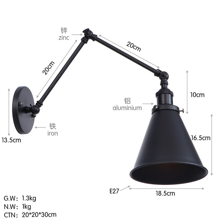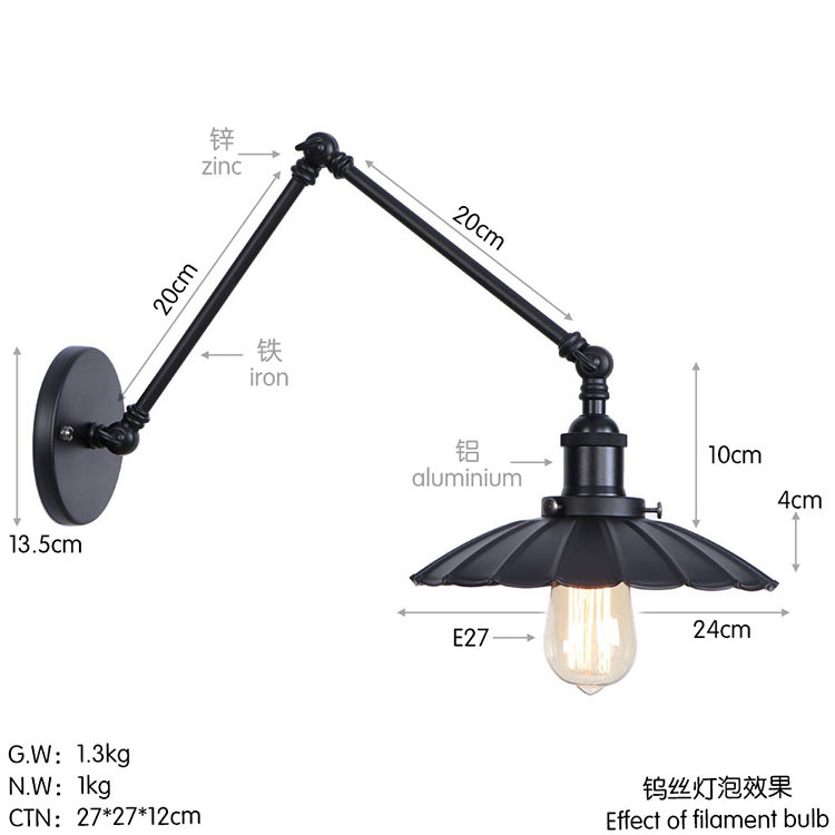 산업 거실 복고풍 침대 옆 램프 미국 스타일 침실 단철 계단 램프 복도 공예 장식 벽 램프
