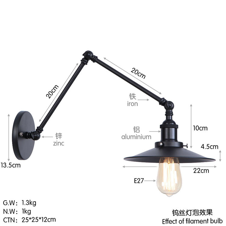 산업 거실 복고풍 침대 옆 램프 미국 스타일 침실 단철 계단 램프 복도 공예 장식 벽 램프스토어 가기
