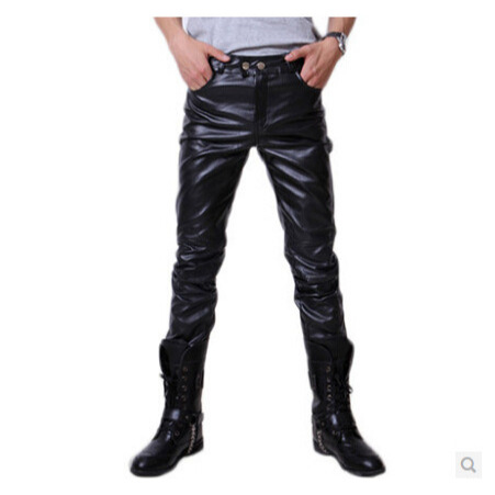 캐주얼 가죽 바지 남성 슬림핏 스키니 팬츠 한국 스타일 바이커 남성 트렌디 가죽 바지 2025 가을 겨울 PU 가죽 긴바지 남성용