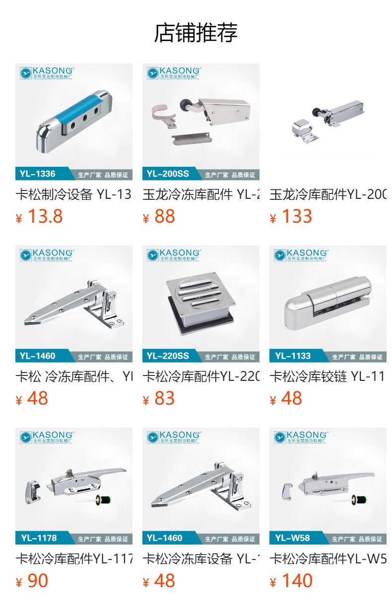玉环玉龙制冷机械厂是一家专业从事门把碰锁和门铰链等五金系列制品的生产、销售及售后服务为一体的企业。企业始建于1988年,已拥有一支技术优良、经验丰富、管理卓效的工作团队。本企业产品采用锌铝合金压铸、生铁铸造、不锈钢硅溶胶铸造、表面镀铬、电泳镀锌,广泛适用于各类柜门配套,特别在冷库、厨房冰箱、烤箱、冷藏柜等需高密封的产品上更显特色的高密封性能。本厂一直秉持“诚信立业、品质至上、技术创新”的宗旨,致力于提升“玉龙”“卡松”品牌。企业以先进的工艺、优良的品质、完善的服务饮誉国内外,本厂竭诚欢迎国内外客商来电来函共谋发展。