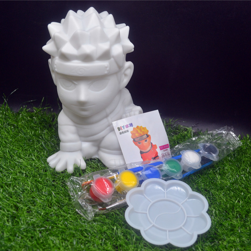本产品包含一个存钱罐高16CM 一个6色高光丙烯颜料 2只优质画笔一个调色盘