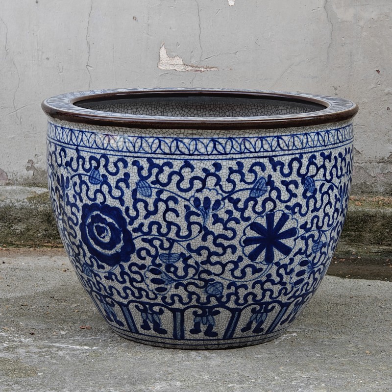 Jingdezhen 세라믹 어항 도매 골동품 손으로 그린 파란색과 꽃 금이 유약 오픈 피스 세라믹 탱크 장식 장식품 공예스토어 가기