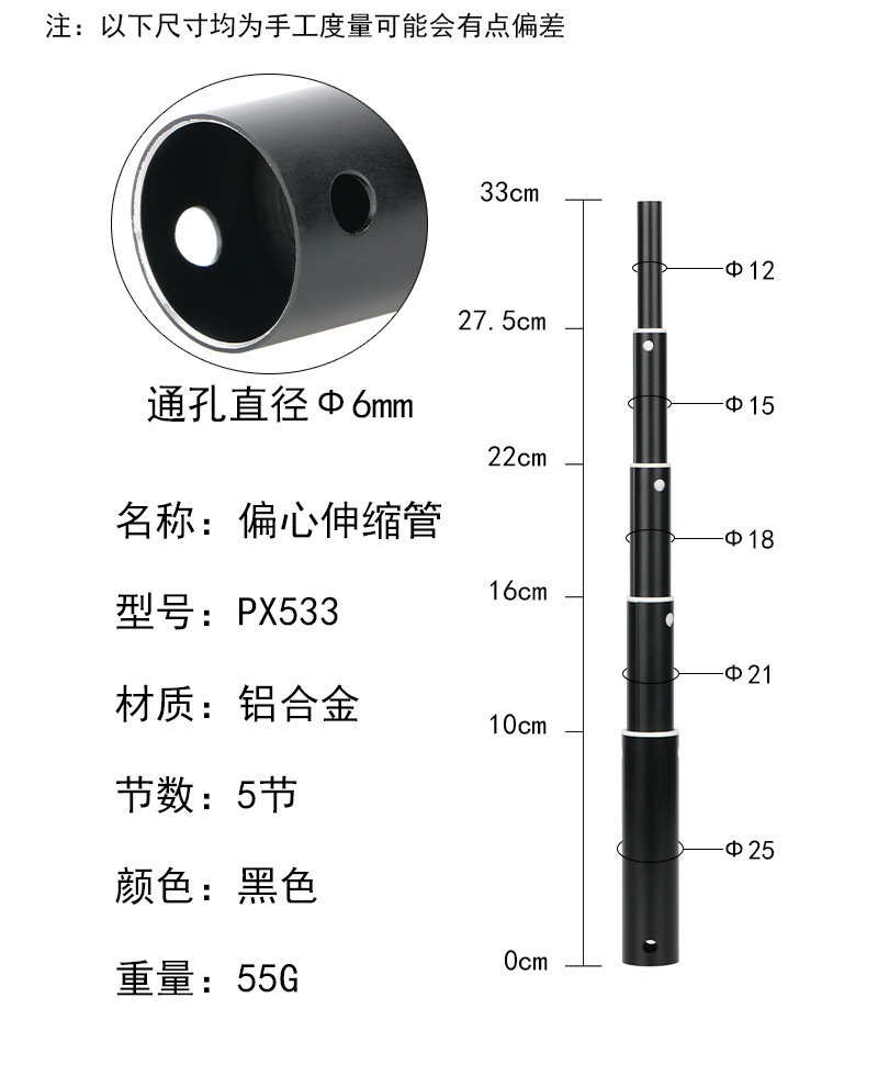 재고 1.5 미터 셀프 타이머 편심 튜브 25mm 삼각대 다리 망원경 비틀림 튜브 알루미늄 합금 5 섹션 튜브