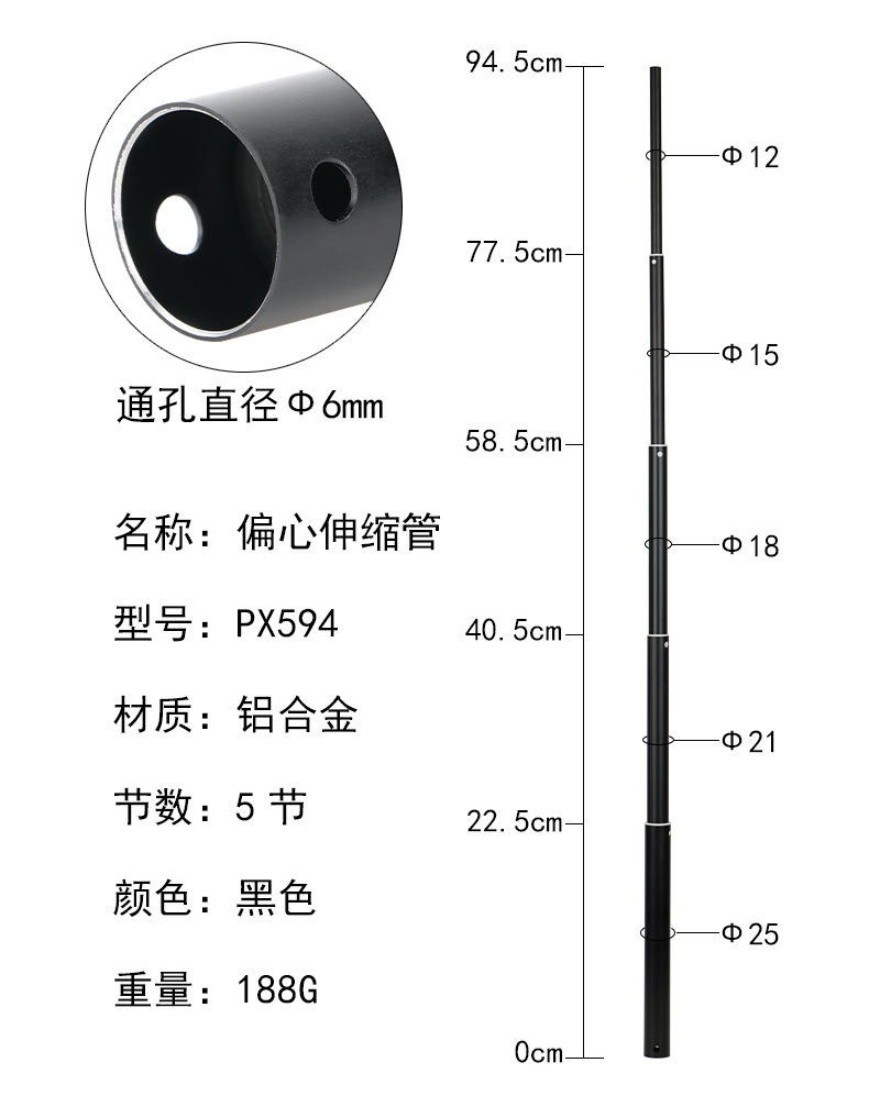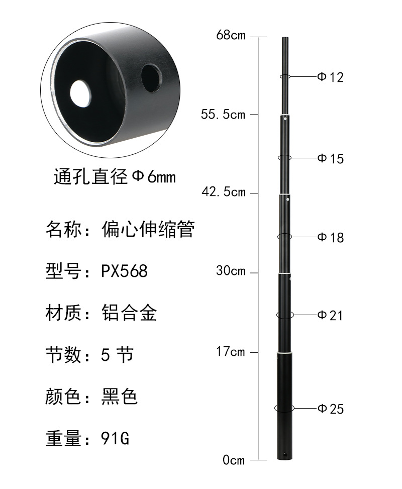 재고 1.5 미터 셀프 타이머 편심 튜브 25mm 삼각대 다리 망원경 비틀림 튜브 알루미늄 합금 5 섹션 튜브스토어 가기