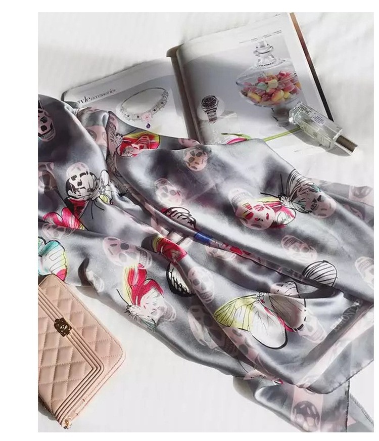 2017 봄과 여름 새로운 해골 모조 실크 인쇄 스카프 선 스크린 비치 타월 에어컨 목도리 스카프 도매