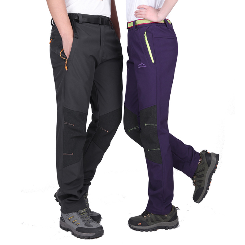 남성과 여성의 야외 폭행 바지 가을과 겨울 방수 방풍 기모 두꺼운 따뜻한 양털 부드러운 쉘 스키 바지 플러스 사이즈