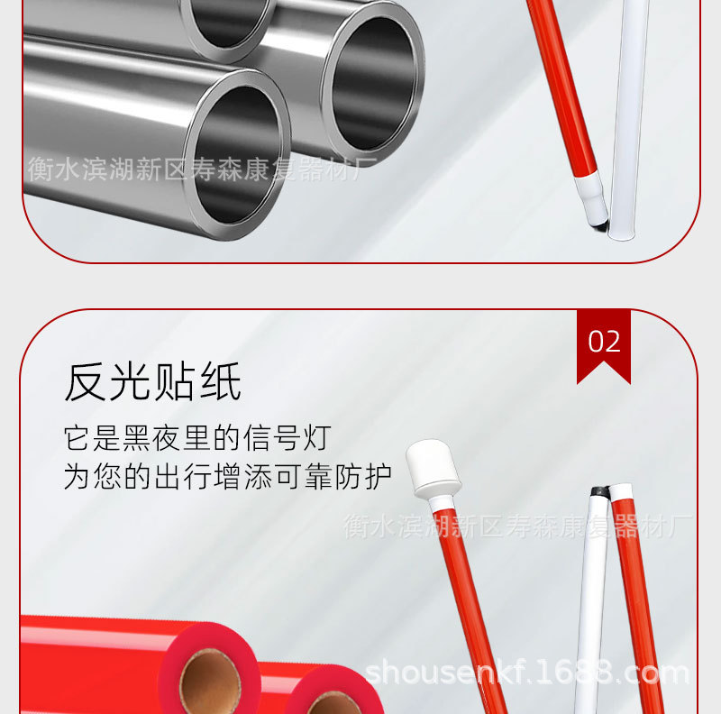 더블 섹션 레드 회전 헤드 가이드 지팡이, 공장 직매 알루미늄 합금 접이식 블라인드 지팡이, 가이드 지팡이 보관함스토어 가기
