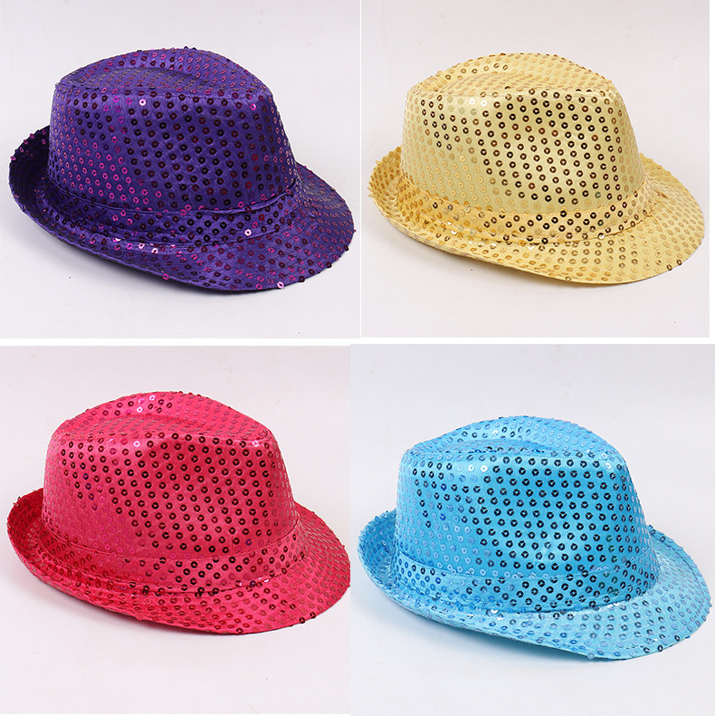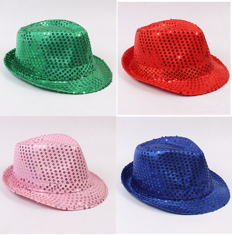 매직 쇼 모자 성인 어린이 유니버설 패션 모자 실버 스팽글 재즈 캡 무대 마술 모자 도매스토어 가기