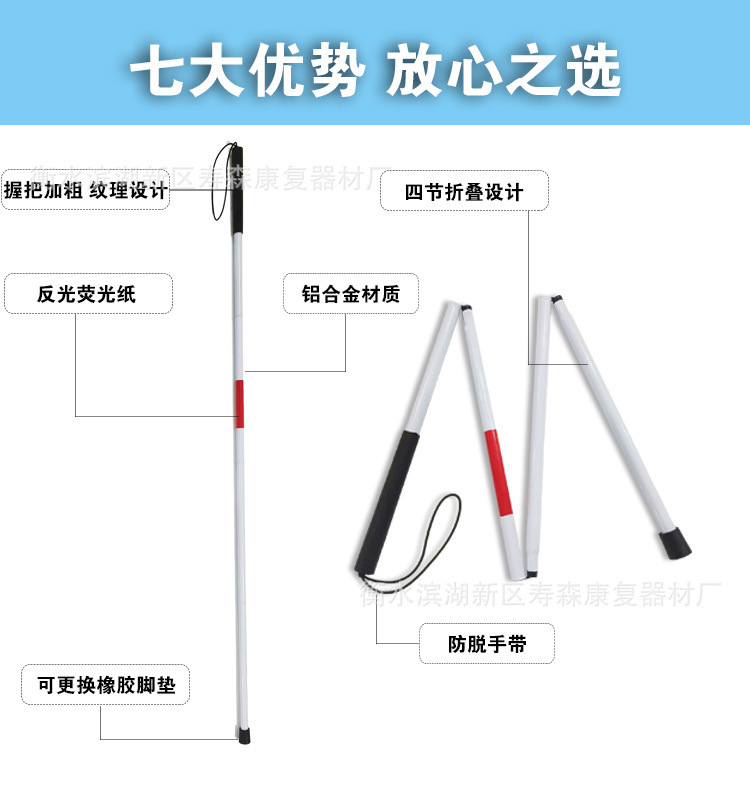 알루미늄 합금 4 배 블라인드 스틱 블라인드 스틱 야간 블라인드 스틱 지팡이 가공 블라인드 스틱 지팡이 공장 도매