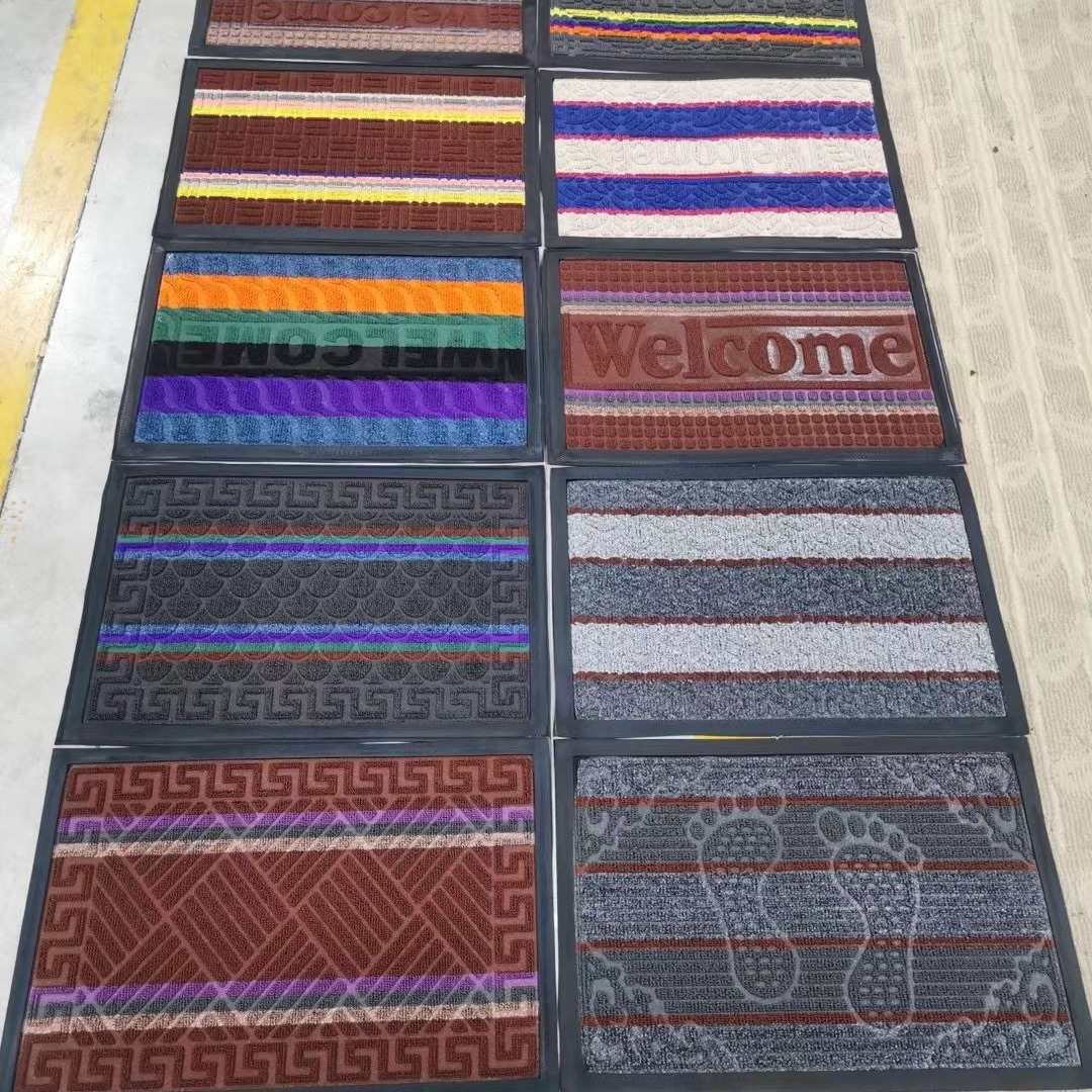 대외 무역 베스트셀러 컬러 스트립 간단한 긴 광장 가장자리 양털 양각 고무 바닥 카펫 침실 홀 거실 바닥 매트