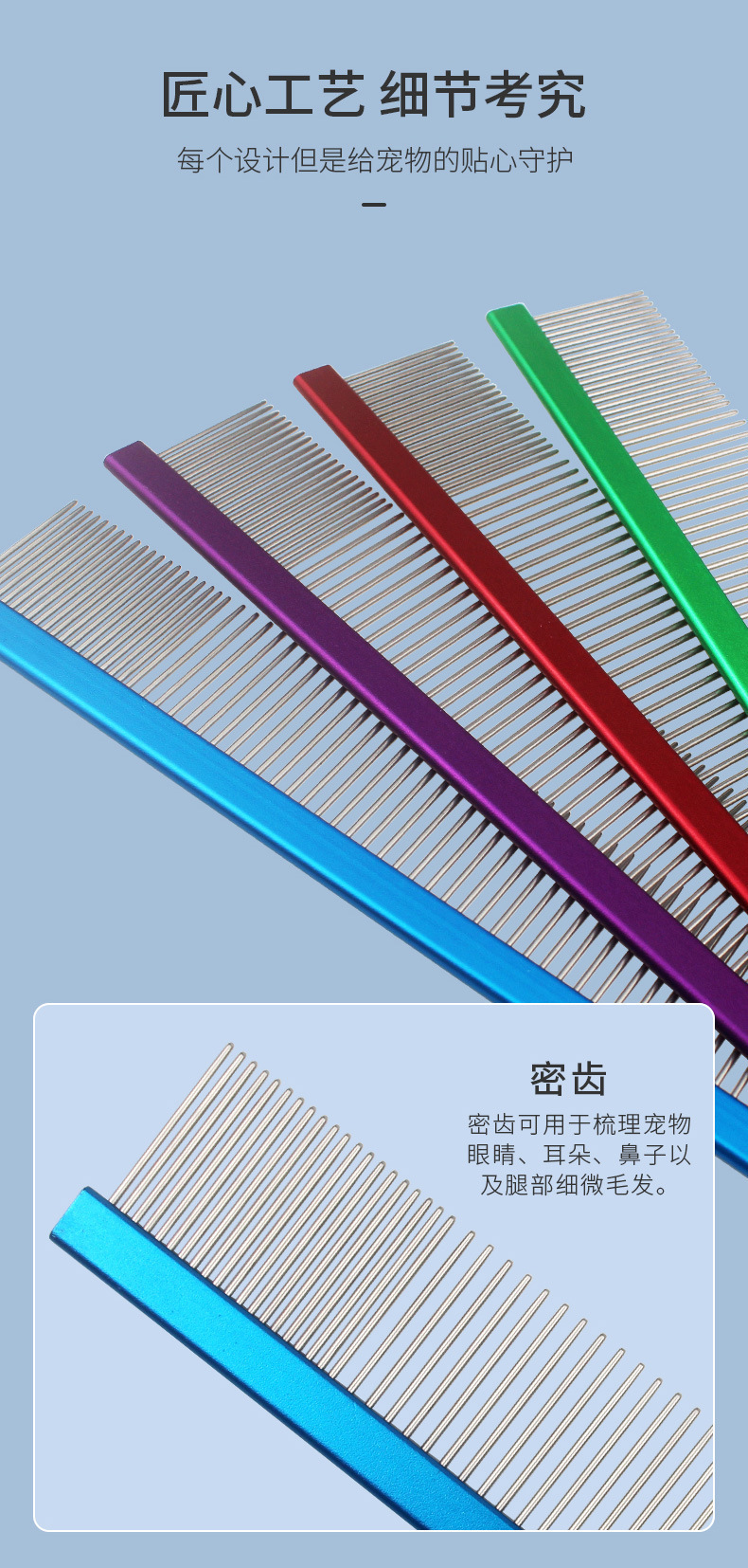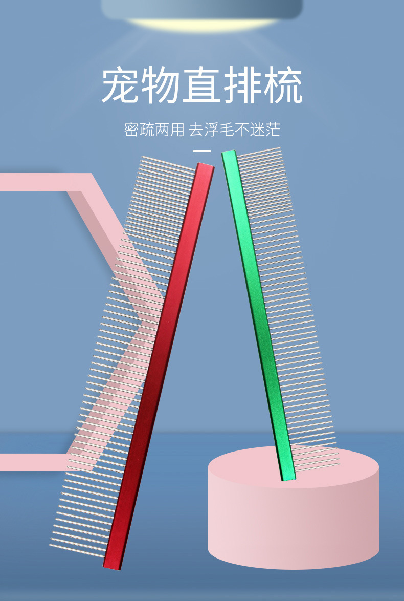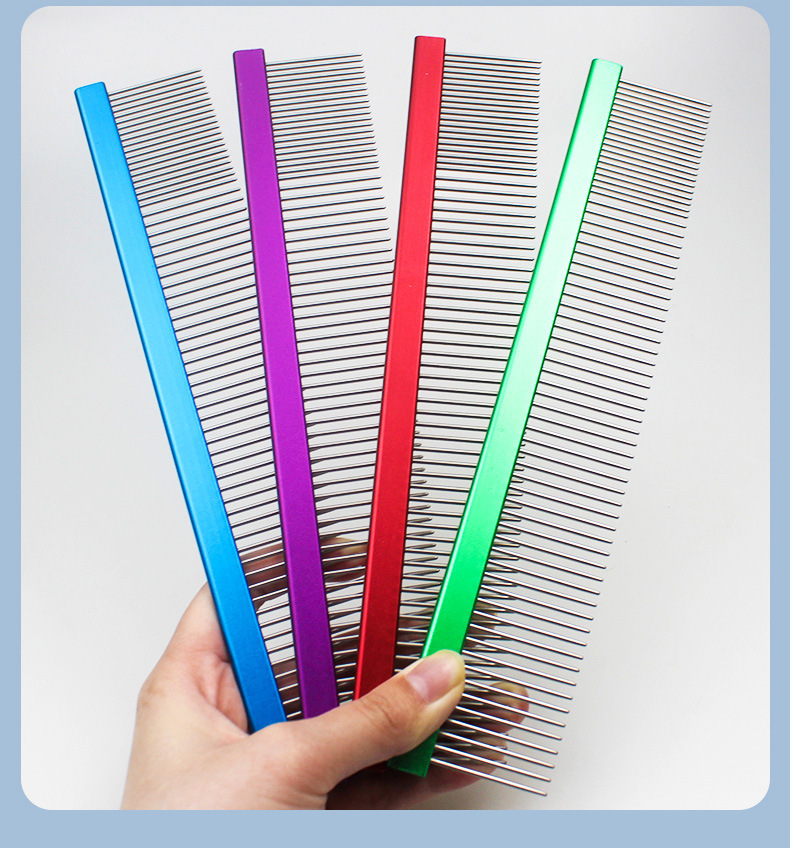 애완 동물 직선 행 빗 개 스테인레스 스틸 빗 바늘 브러시 애완 동물 스테인레스 스틸 행 빗 강철 빗 긴 머리 개 빗 25cm
