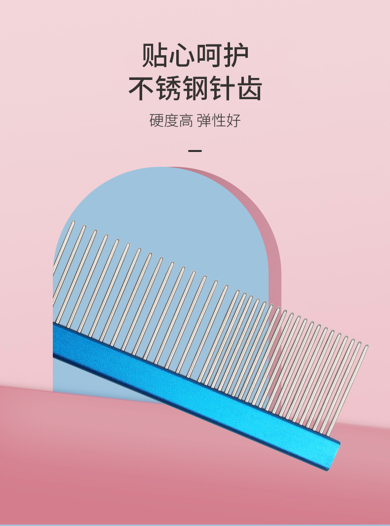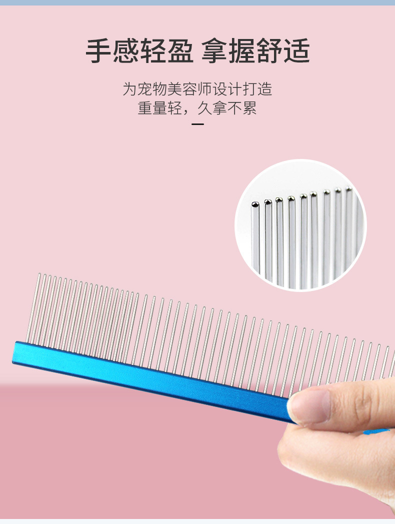 애완 동물 직선 행 빗 개 스테인레스 스틸 빗 바늘 브러시 애완 동물 스테인레스 스틸 행 빗 강철 빗 긴 머리 개 빗 25cm스토어 가기