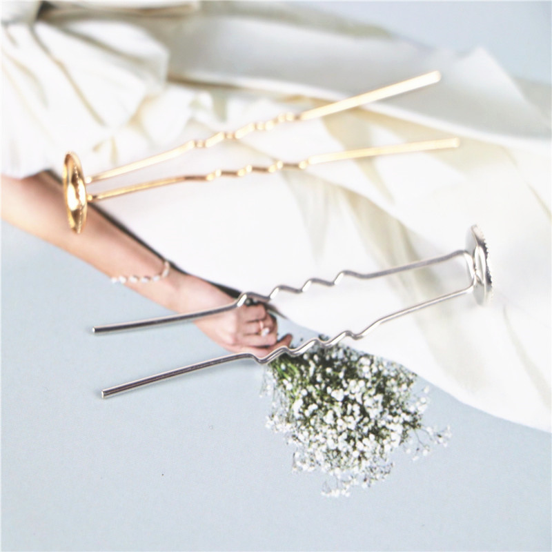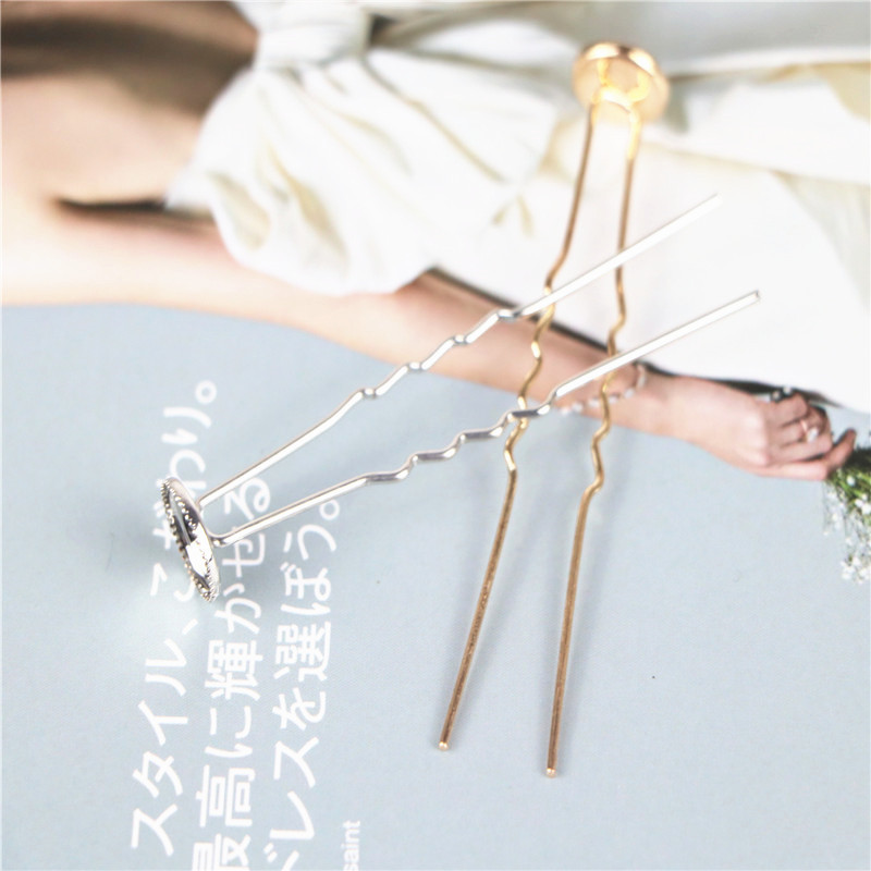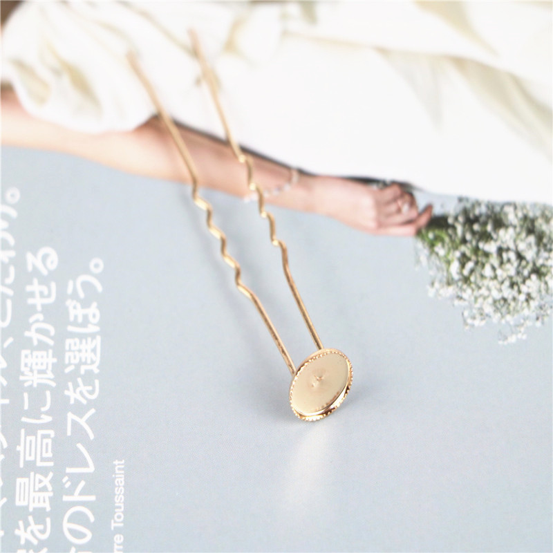 畅销金色带盘U型夹,长6.5厘米,盘的直径是1.1厘米,这款盘底是平的,只能镶平底的配件,还有款尖底的,价格一样,拍时注意,款式多,量大可以定做加工。