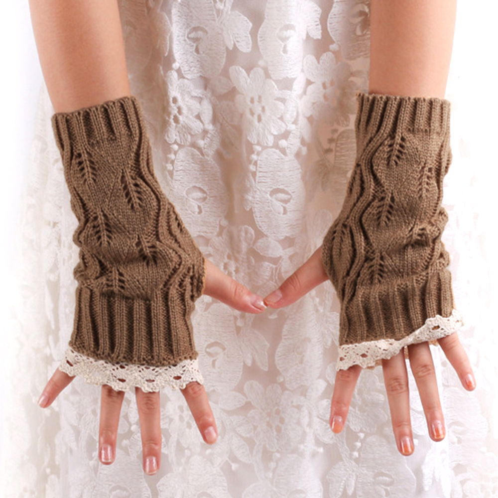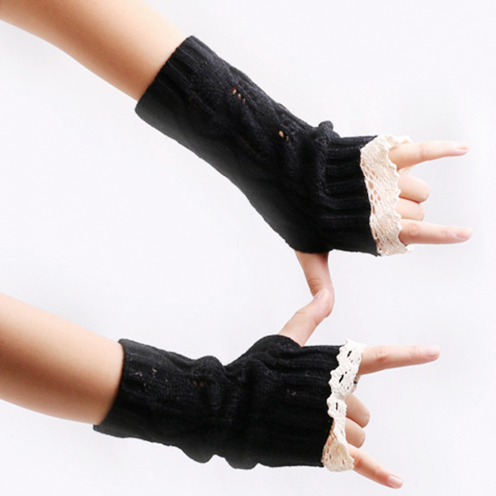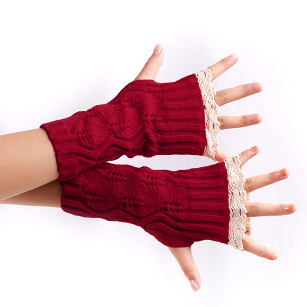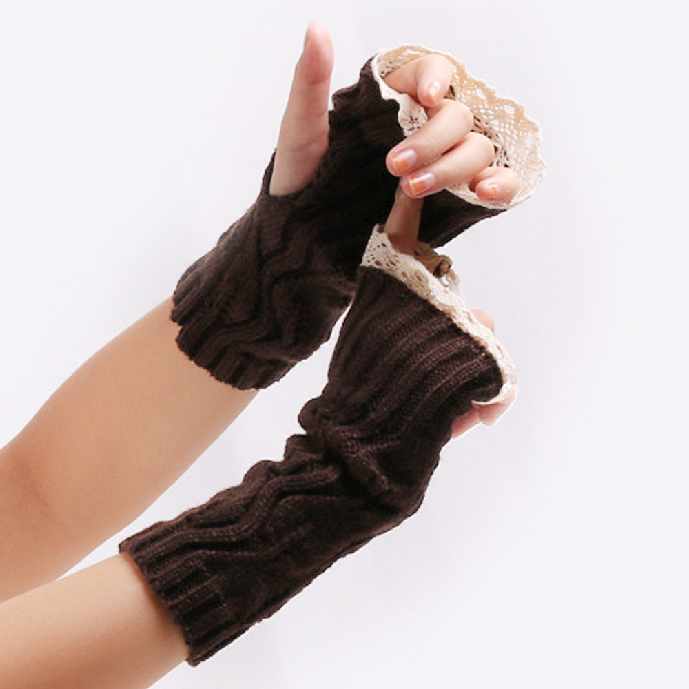 겨울 양모 장갑 여자의 가을과 겨울 아크릴 니트 레이스 손목 홀더 크로스 국경 노출 손 따뜻한 장갑