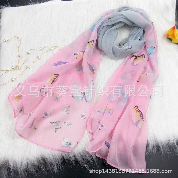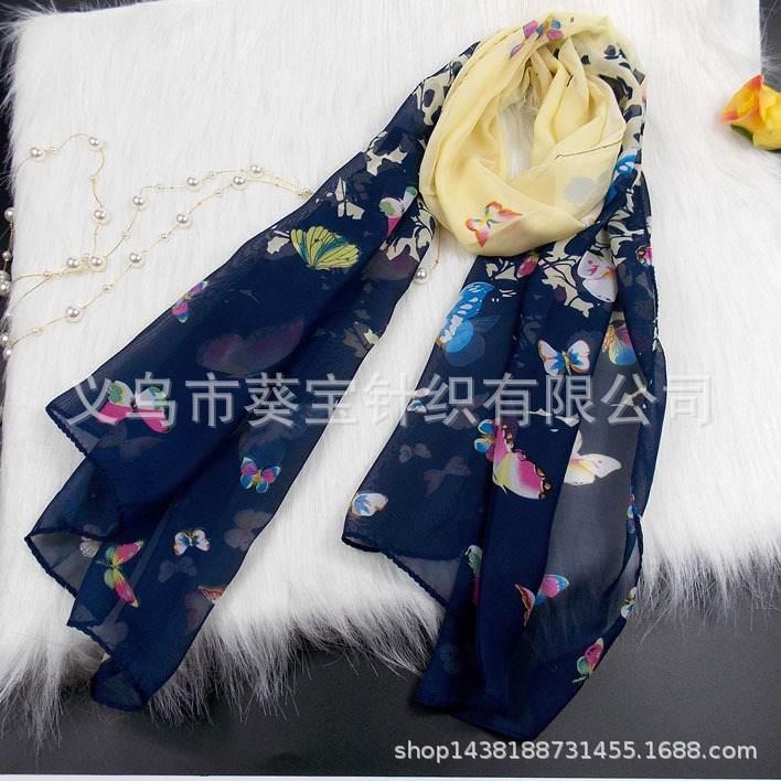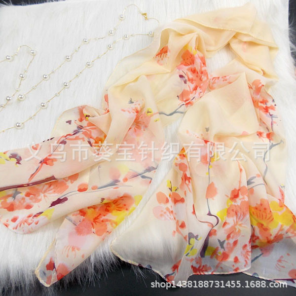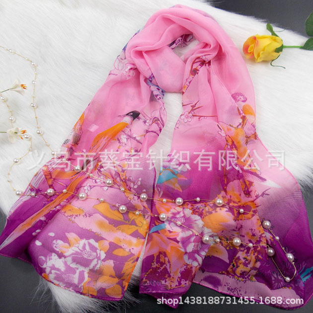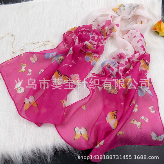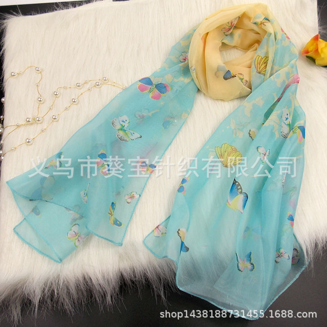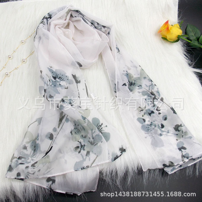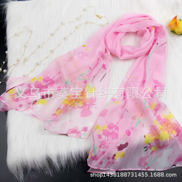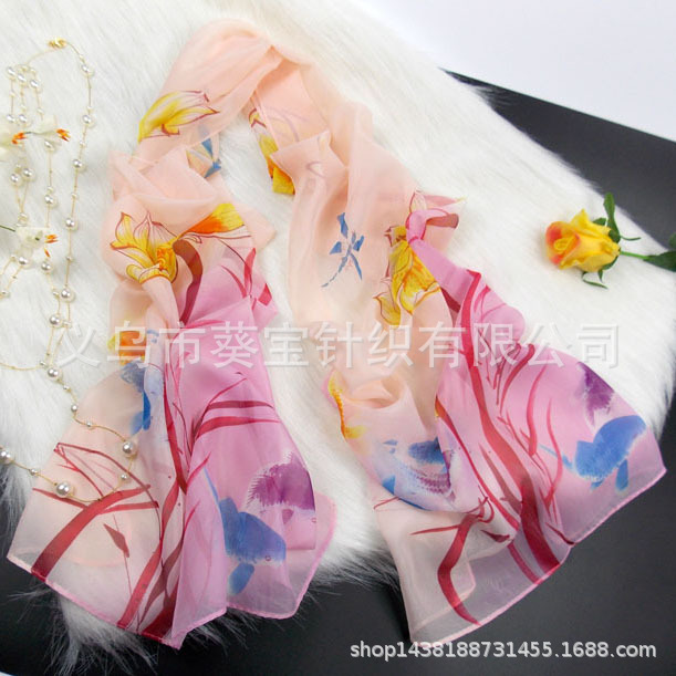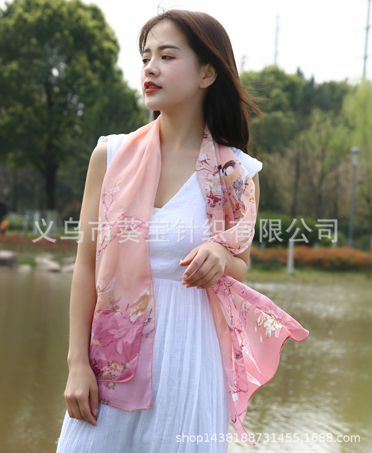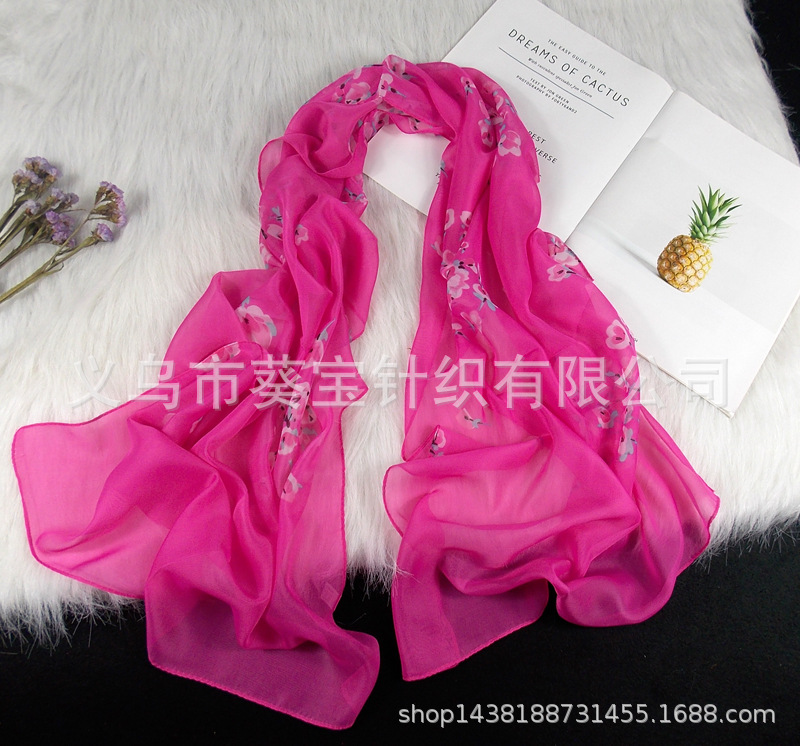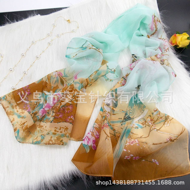 실크 스카프 여성의 봄과 가을 조커 쉬폰 실크 스카프 인쇄 스카프 이우 작은 실크 스카프 자외선 차단제 선물 스카프 공장 아울렛