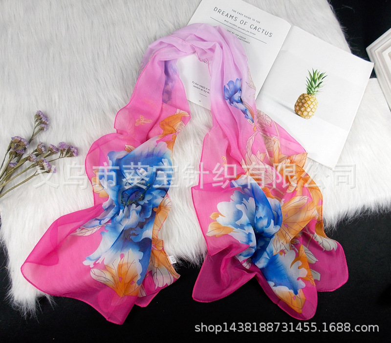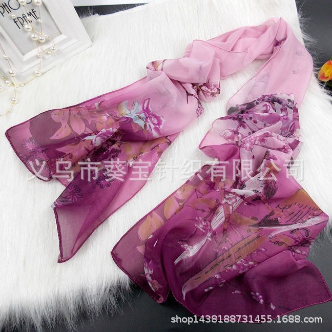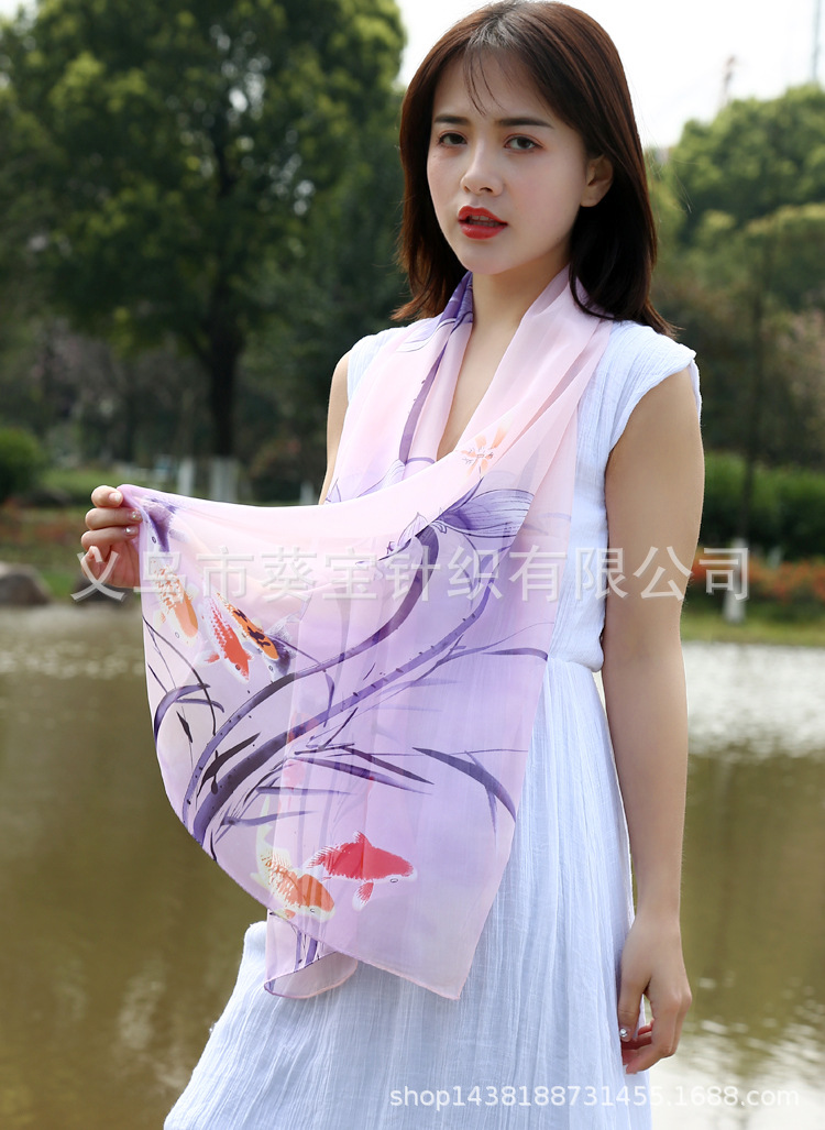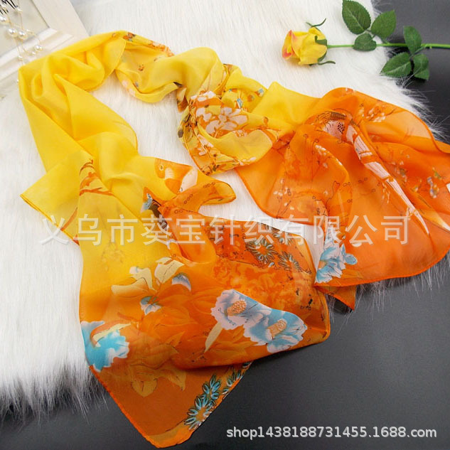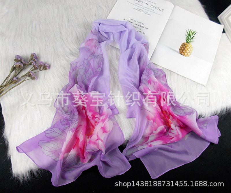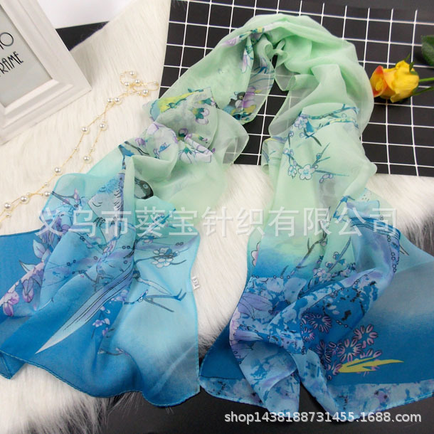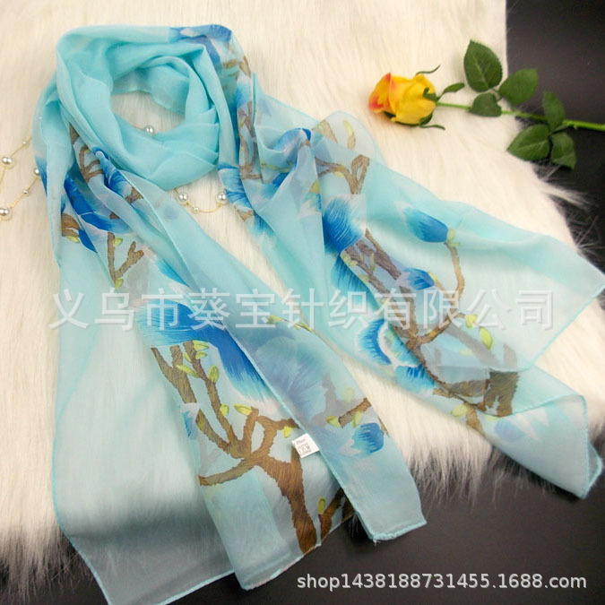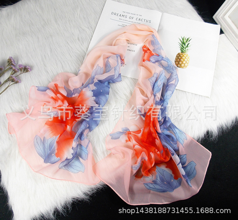 실크 스카프 여성의 봄과 가을 조커 쉬폰 실크 스카프 인쇄 스카프 이우 작은 실크 스카프 자외선 차단제 선물 스카프 공장 아울렛스토어 가기