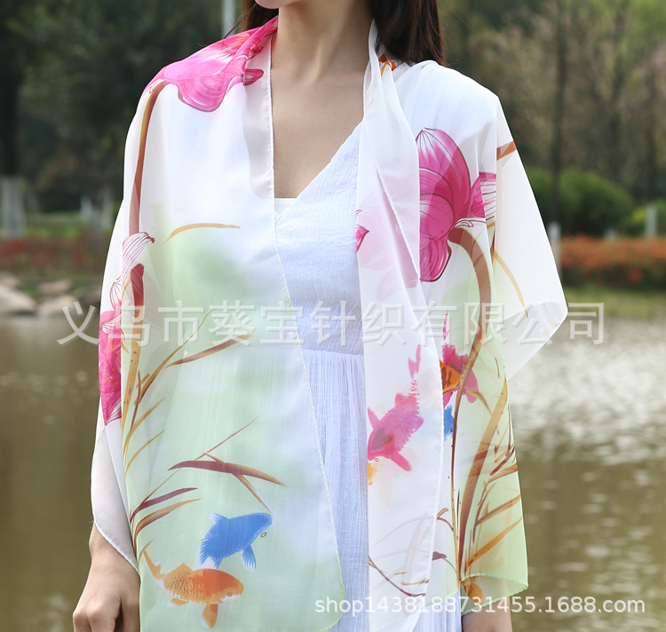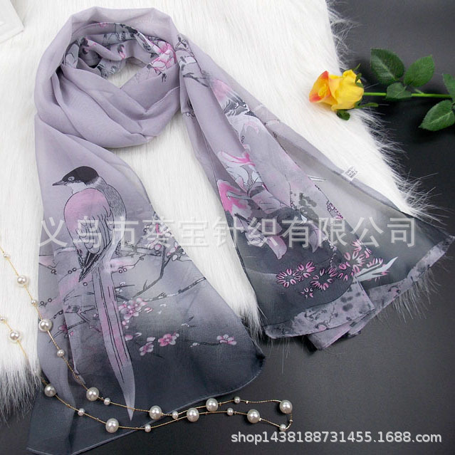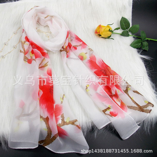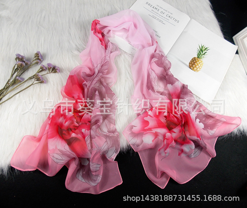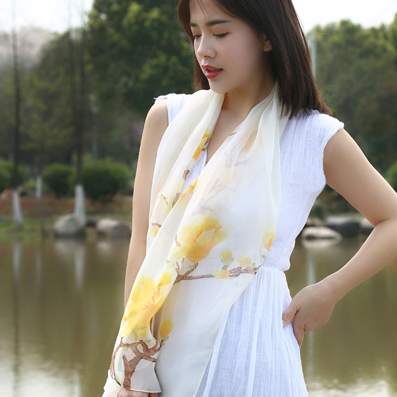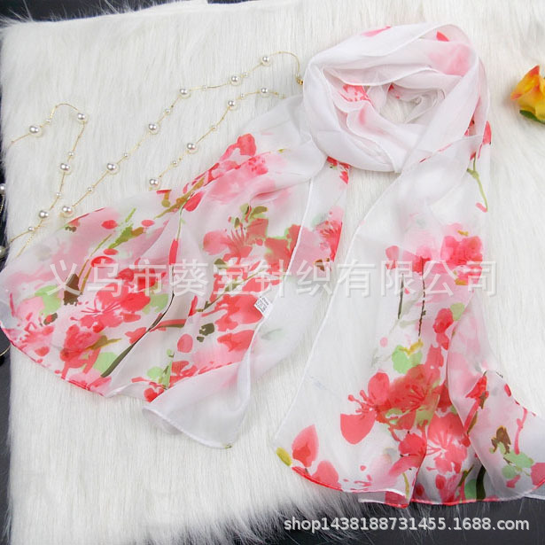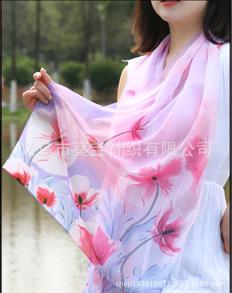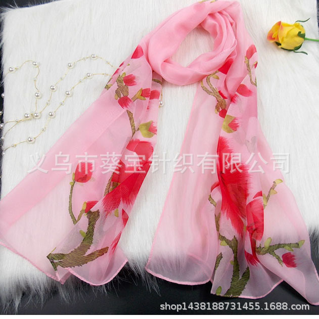 실크 스카프 여성의 봄과 가을 조커 쉬폰 실크 스카프 인쇄 스카프 이우 작은 실크 스카프 자외선 차단제 선물 스카프 공장 아울렛스토어 가기