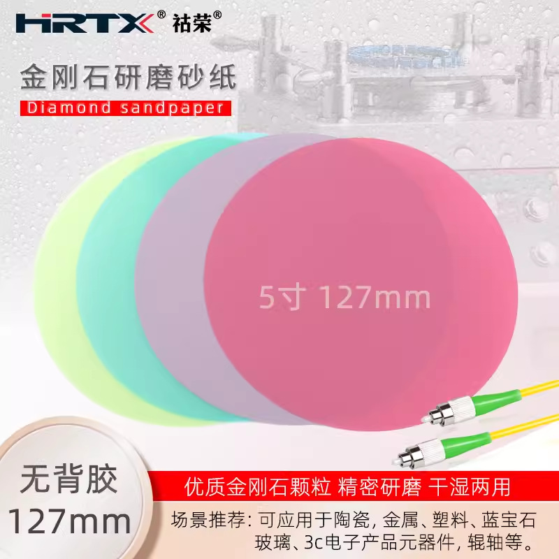 品牌 HRTX厚度 0.82(mm) 颜色 彩色 粒度 30u-1u 纸重 1.5克 用途 光纤陶瓷插芯研磨抛光用等 尺寸 各种尺寸(mm)可定 盒子包装说明 50片一包(纸盒包装) 等级 AAAA 材质 金刚石 型号 D15 D9 D3 D1 矿砂 金刚石钻石 适用范围 光纤陶瓷插芯研磨抛光,微电机马达转向器研磨抛光,光学镜片研磨抛光等 金刚石研磨纸是利用国际上先进的超精密涂布技术,将微米或纳米级金刚石微粉与新型高分子材料均匀分散后,涂布于高强度薄膜表面,然后经过高精度的裁剪工艺加工而成。 SMD金刚石研磨纸 产品特点: 产品生产批次差异小,产品质量稳定 ;具有较好的强度和柔韧性;能达到理想的曲面抛光效果;产品使用寿命周期长,起步时间短牢度可靠;适用于干法抛光,也适用于以水或者油为研磨介质的抛光、 目数 # 600 # 2000 #3000 #4000 #8000 粒度/um 30 9 6 3 1 园型研磨片 Φ70mm、Φ110mm、Φ127mm(5inch)、Φ203mm(8inch) 方型研磨片 114mm*114mm、152mm*152mm(6inch)、228mm*228mm(9inch) 注:除以上规格型号外,可根据客户的需求定做其他规格产品。 应用范围: 光纤研磨陶瓷插芯研磨抛光;光学镜头、光学晶体、LED、LCD的研磨抛光;磁头、硬盘的抛光;微型马达轴和换向器的抛光。