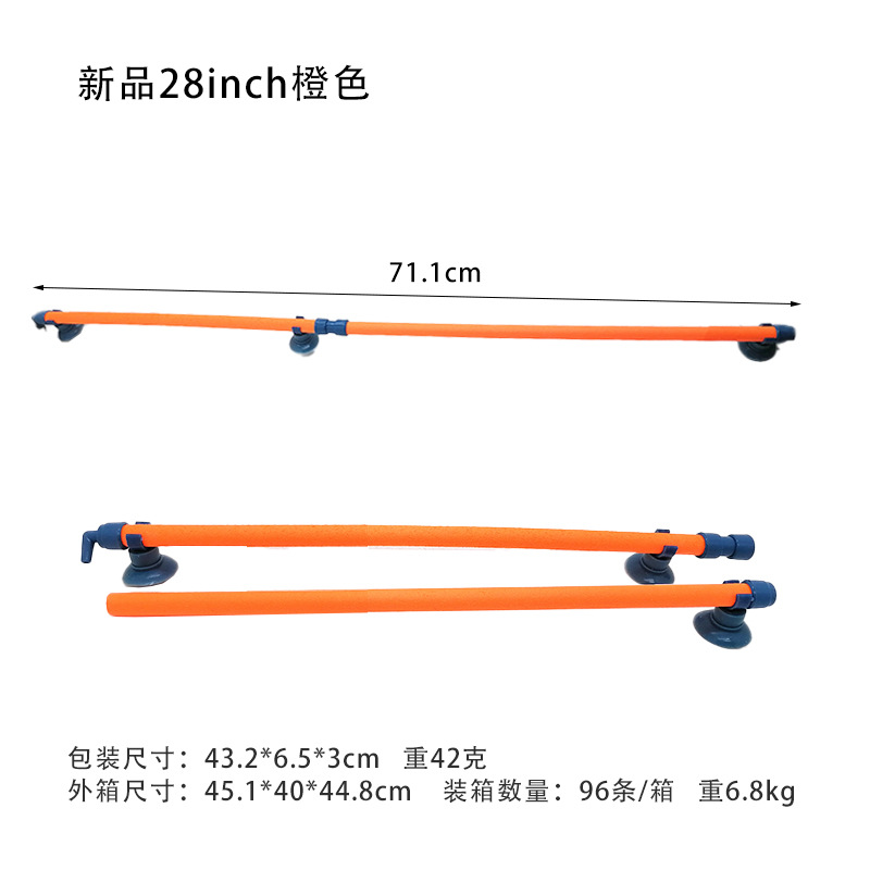 【规格】:7inch17.8cm重10克,10inch25.4cm重12克,14inch 35.6cm重15克,18inch47.5cm重34克,23inch58cm重37克,28inch71.1cm重41克 直径为1cm; 7inch 37.8*26.1*42.6cm; 一箱96条;重3.21kg; 10inch 38.7*31.8*43.9cm; 一箱96条;重3.93kg; 14inch 38.7*31.8*43.9cm; 一箱96条;重4.52kg; 18inch 39.4*37.8*44.1cm ; 一箱96条;重5.37kg; 23寸 39.4*37.8*44.1cm, 一箱96条;重5.5kg; 28inch 45.1*40*44.8cm 一箱96条;重6.8kg;