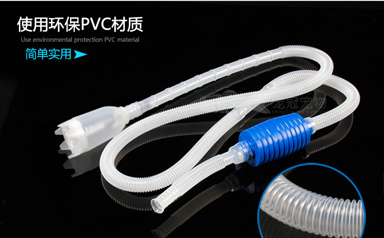 本品采用气压式虹吸原理设计,帮助鱼友方便简单的进行鱼缸换水抽水工作,取代古老用水管嘴巴吸的土办法,使养鱼变得更容易,更安全卫生。吸水同时可帮助清洗沙石及附在水草和沙床上的残渣和污渍。直至水从出水口出水