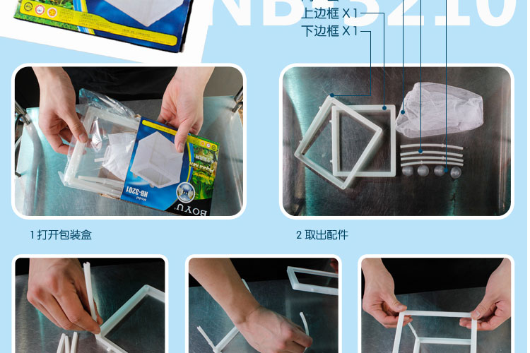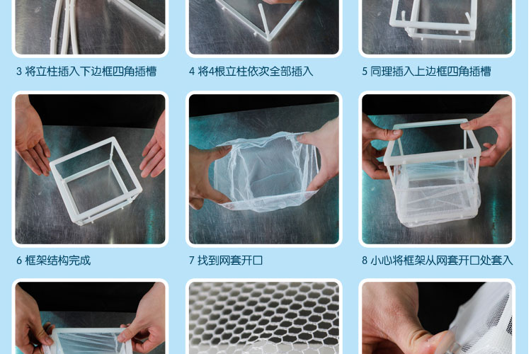 2.将细网由下往上套住整个方框.
