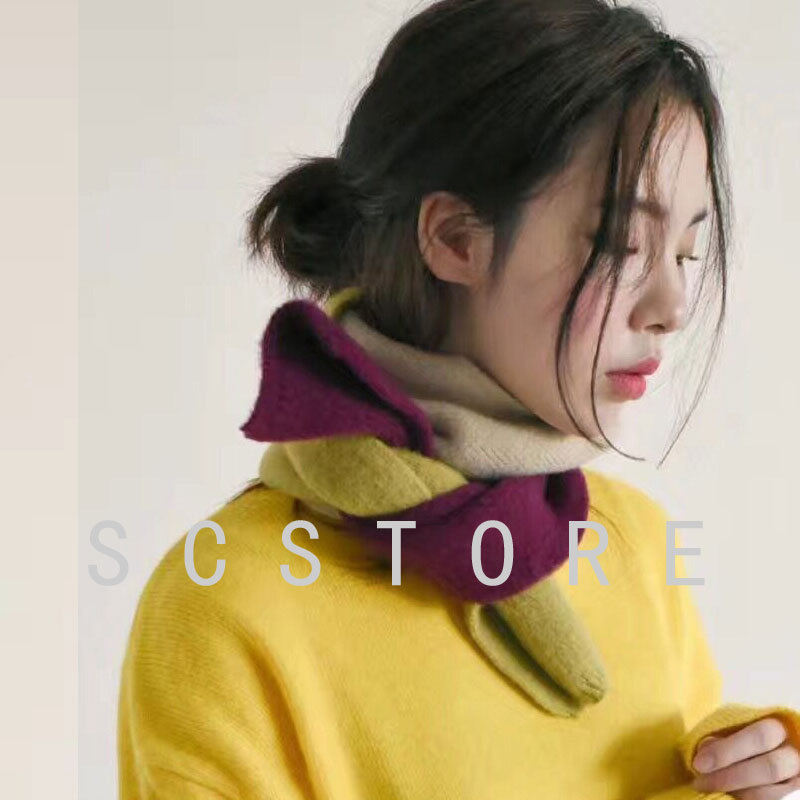 한국 동대문 INS 핫 컬러 매칭 울 작은 스카프 여성의 가을과 겨울 니트 대비 색상 보온 학생 스카프