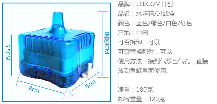 小型鱼缸:小型鱼缸、养鱼、养草、养虾等,都是可以很方便使用(过滤、增氧、培菌)。