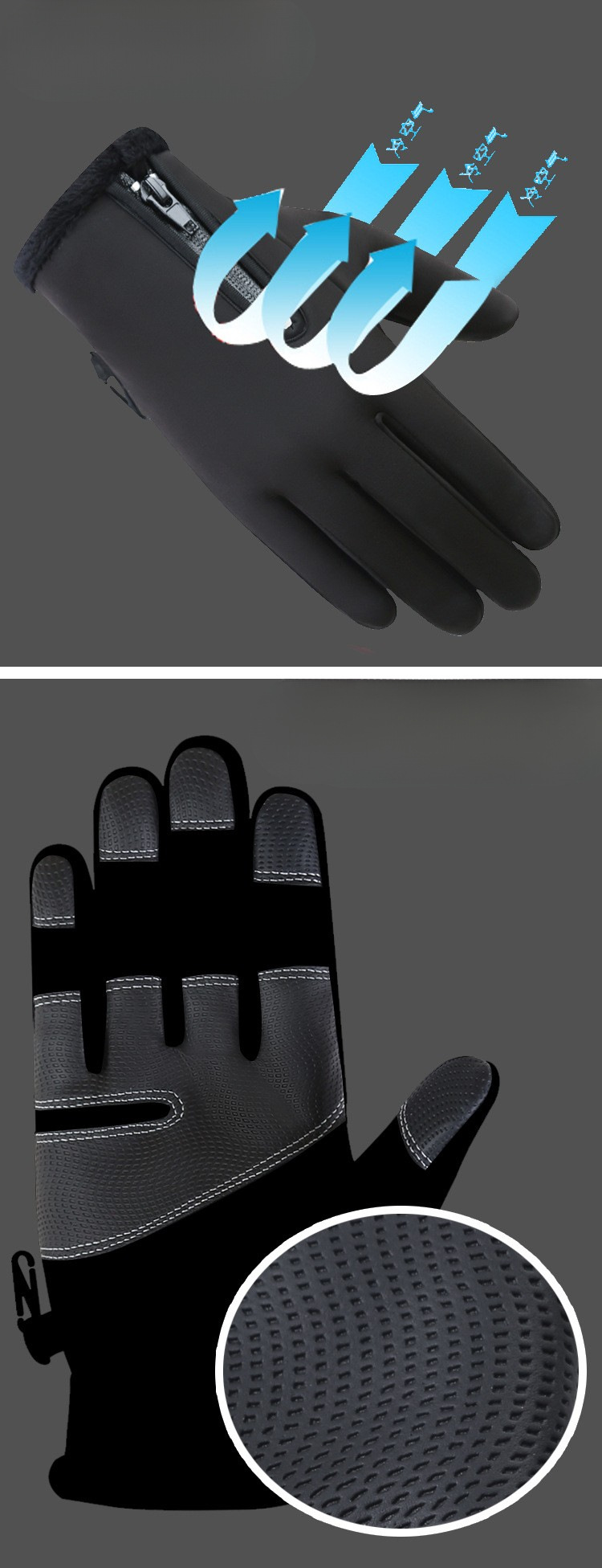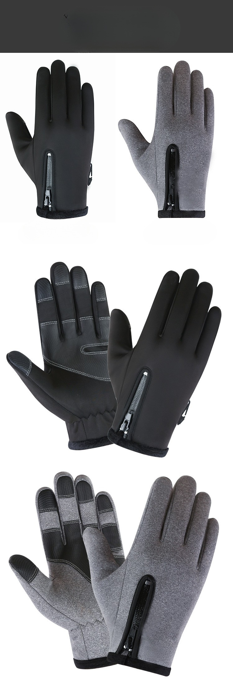 가을과 겨울 사이클링 남성과 여성의 양털 방풍 따뜻한 터치 스크린 장갑 야외 등산 스키 사이클링 지퍼 장갑