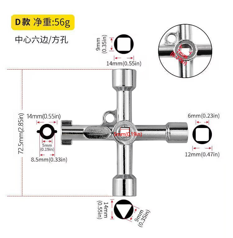 다중 사양 십자형 전기 제어 캐비닛 삼각형 키 렌치 엘리베이터 도어 수량계 밸브 사각 구멍 원형 구멍 키스토어 가기