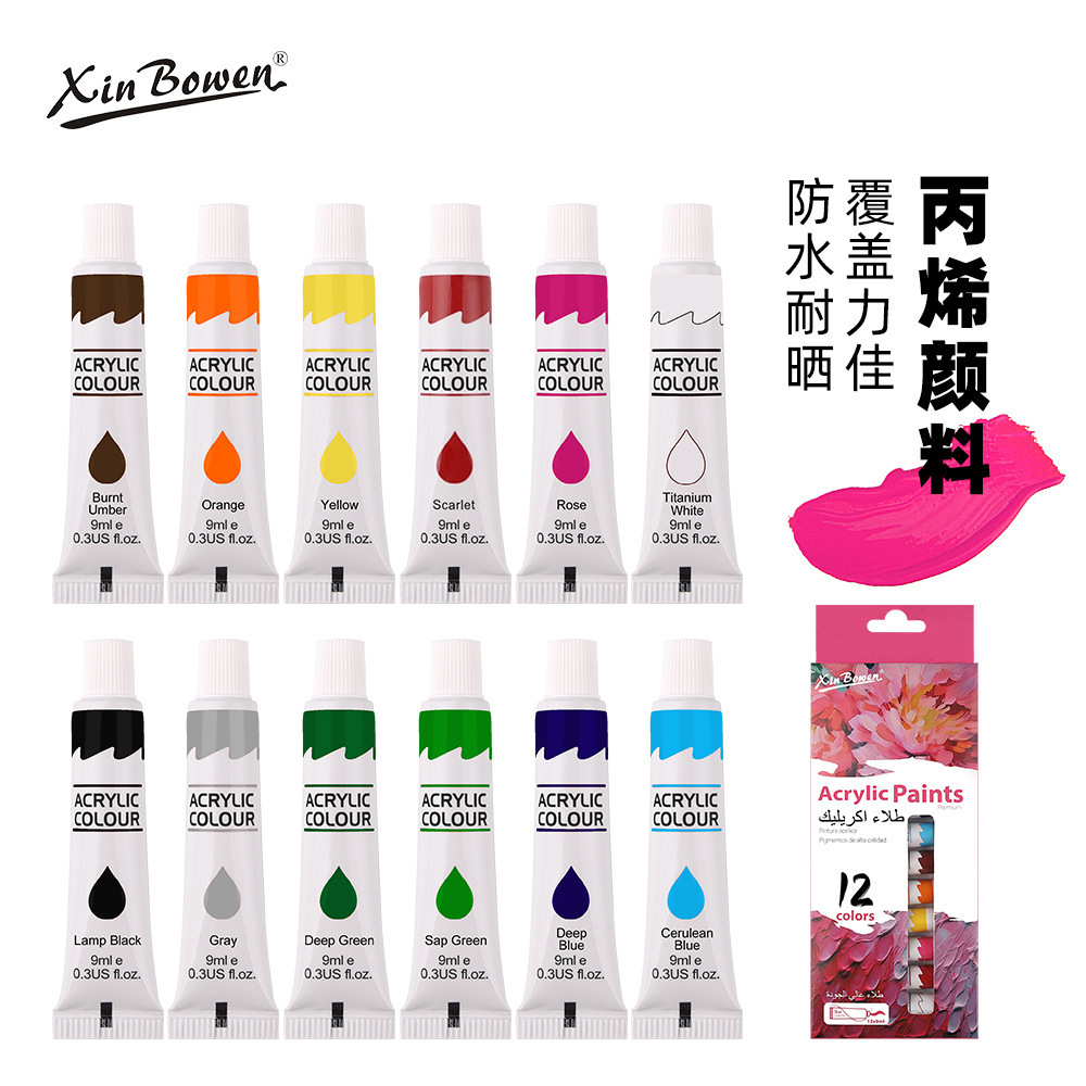 크로스-국경 어린이 DIY 낙서 그림 안료 아크릴 안료 12 색 세트 학생 미술 그림 안료 도매