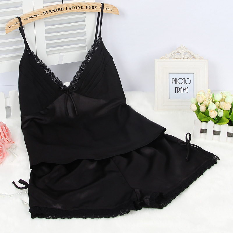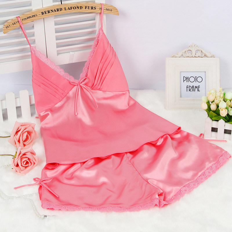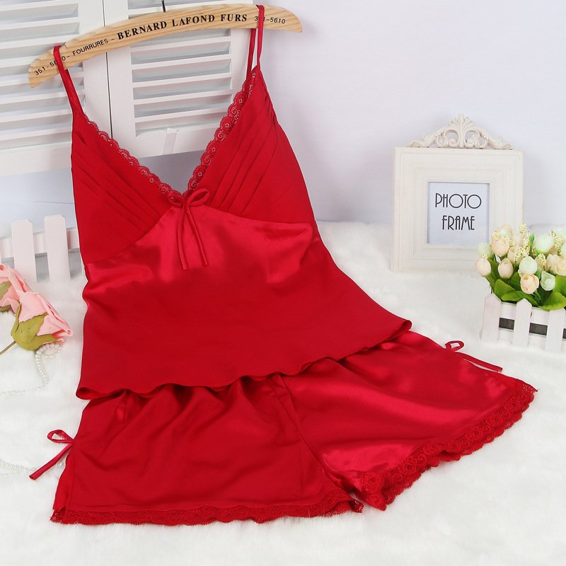 가정 의류 소녀 여름 얇은 실크 잠옷 반바지 여성 섹시한 잠옷