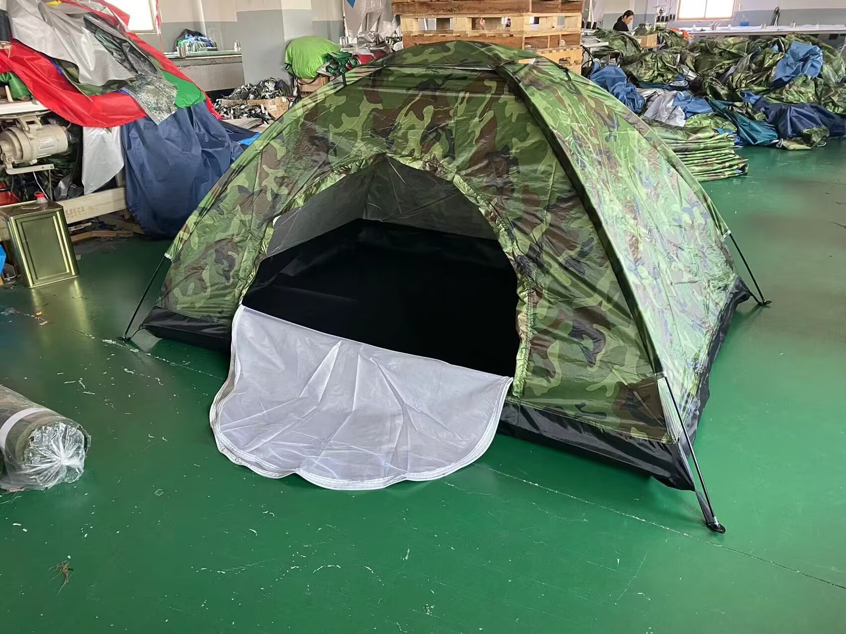 【产品结构】单层,有天窗,门窗处有一层白纱,可防虫,通风.