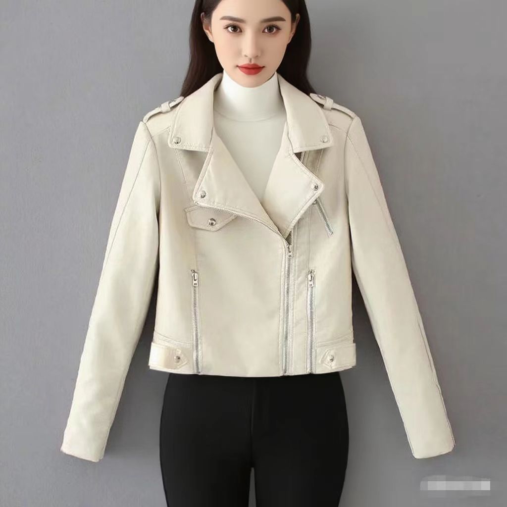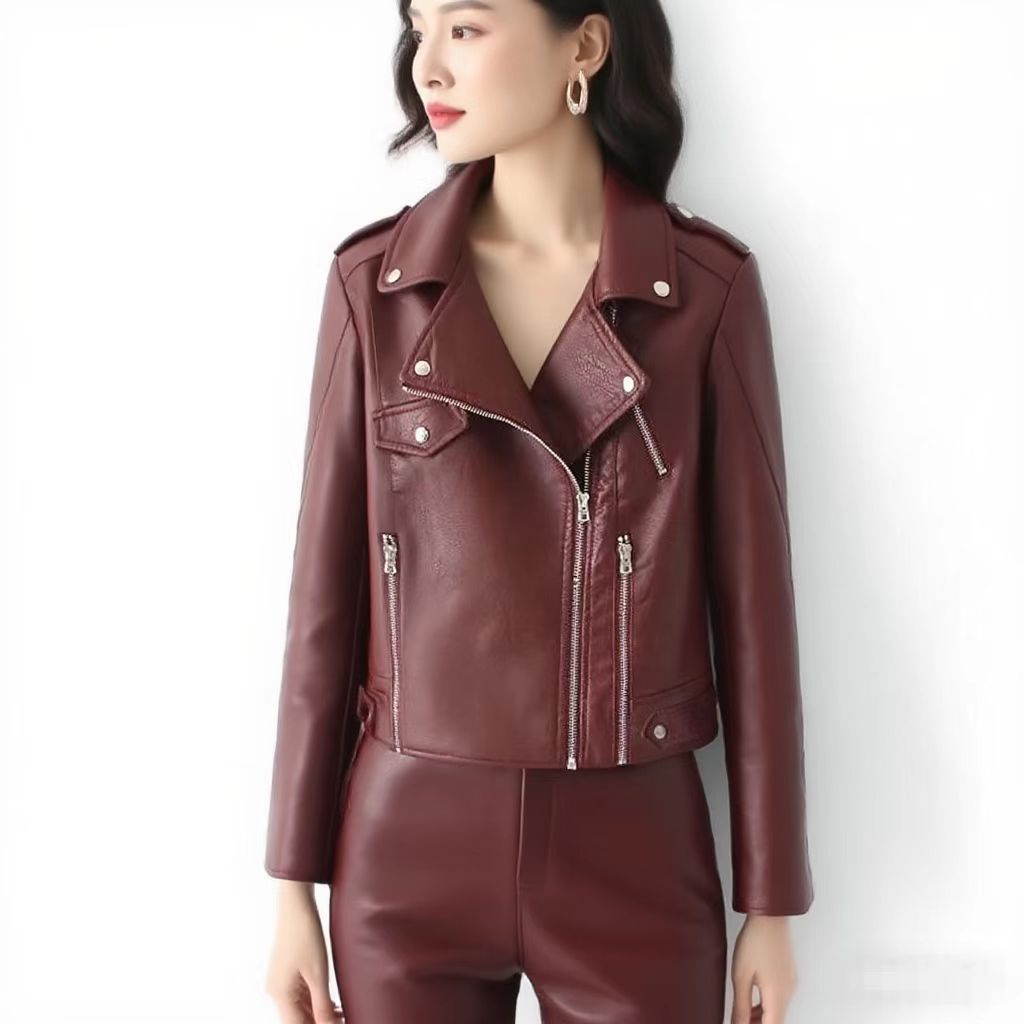 가을과 겨울 새로운 유럽과 미국 오토바이 재킷 슬림 짧은 코트 재킷 PU 숙녀 가죽 공장 직판