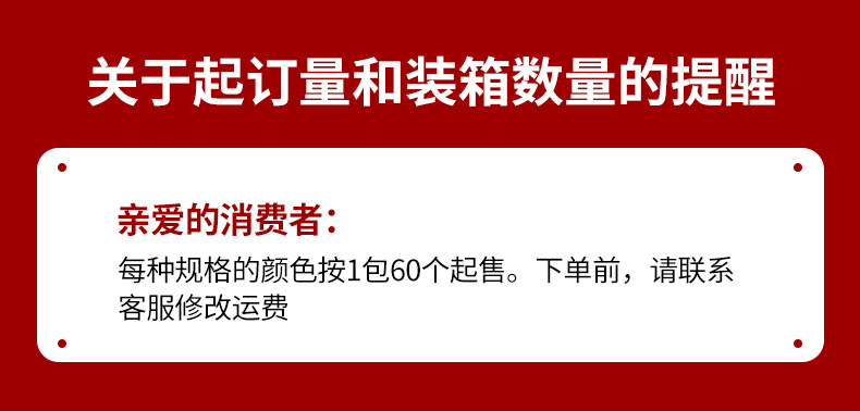 • 2mm 빨간색과 흰색, 각 사양에 대해 최소 60개 판매