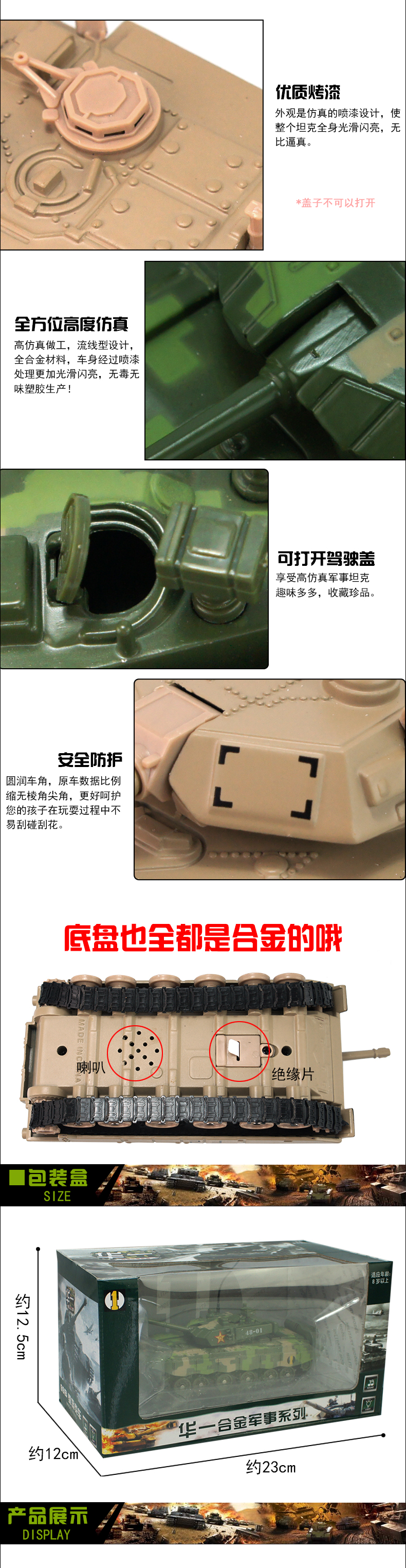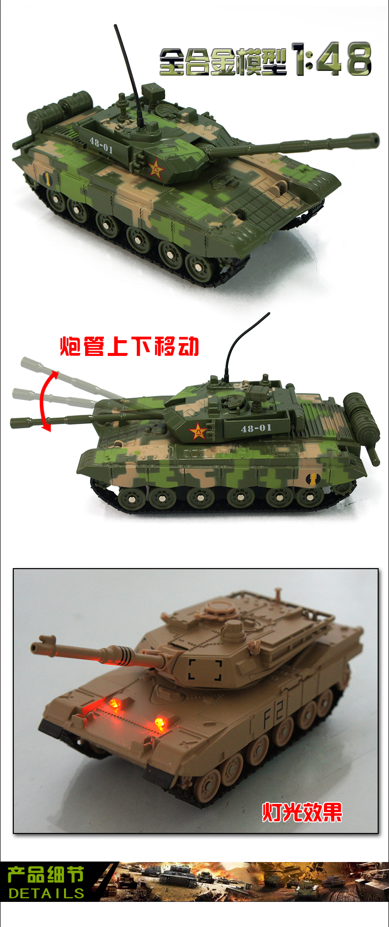Huayi 합금 탱크 중국 주력 탱크 장갑차 소리와 빛이 있는 풀백 T-99 시뮬레이션 군용 모델 전투 차량
