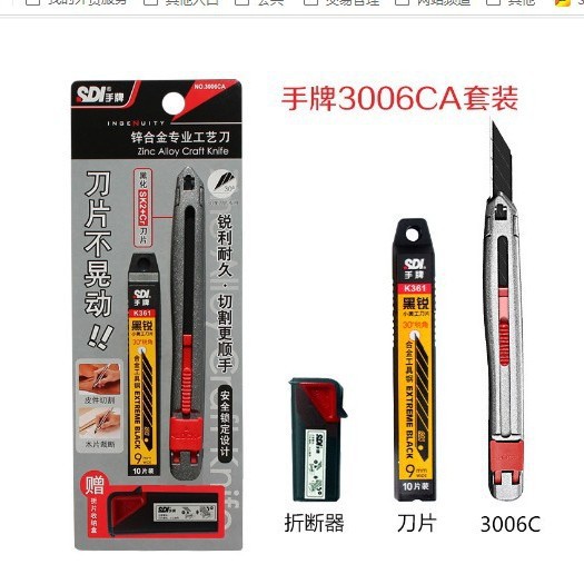 ●手牌美工刀片采用日本合金钢材料、刀片锋利,利于转弯切割、耐磨性好。