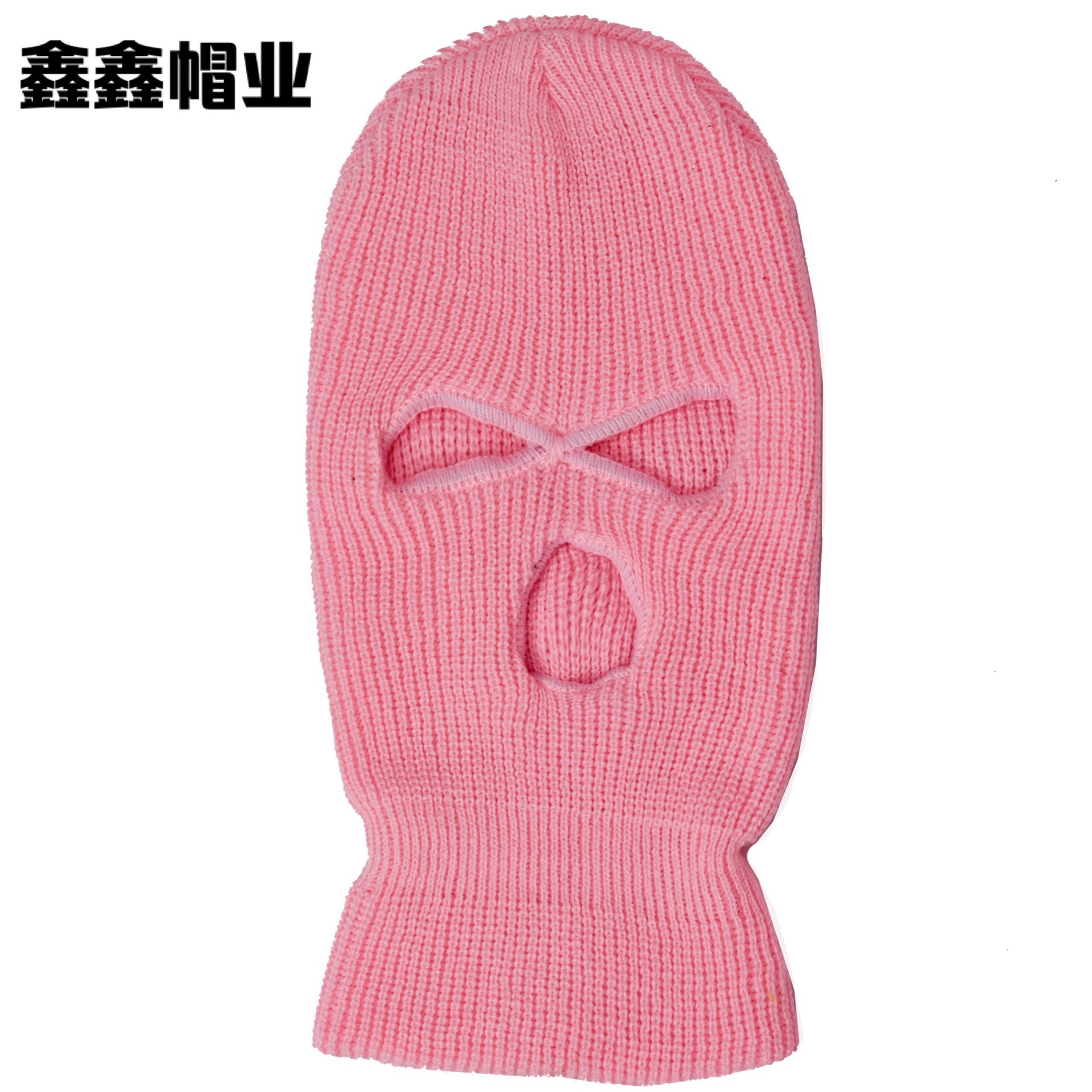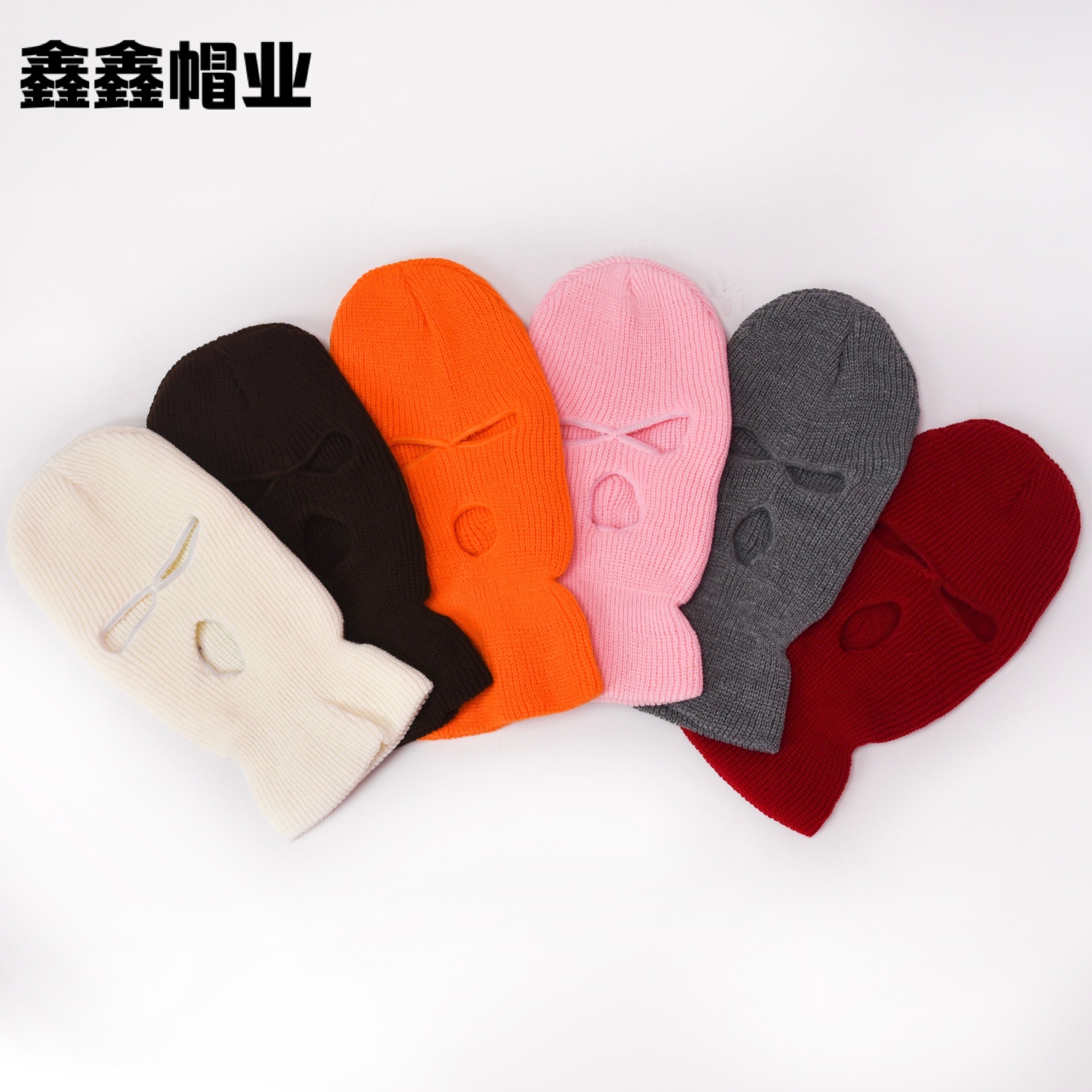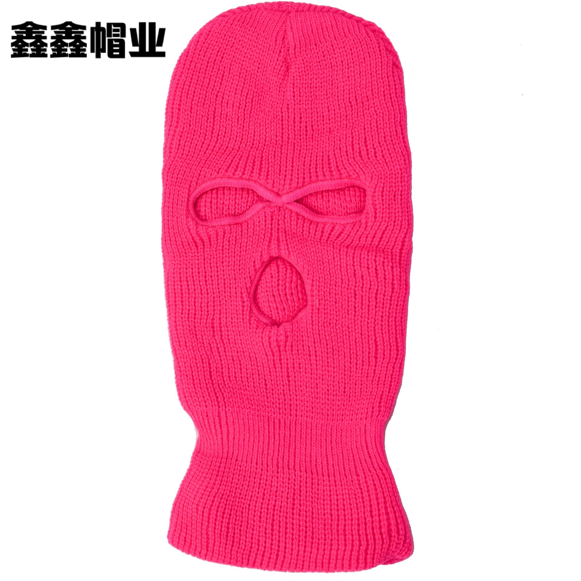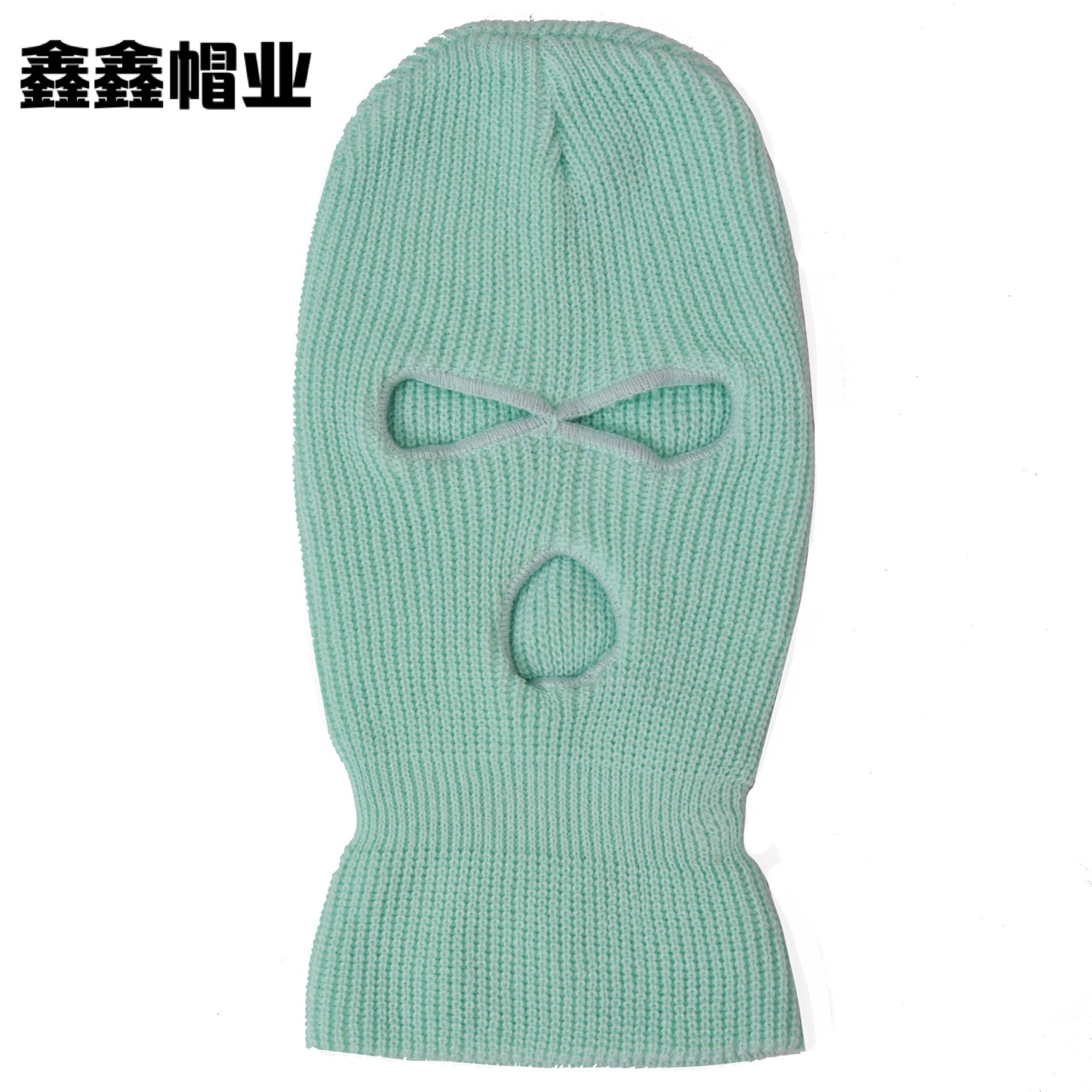 겨울 주괴 바늘 3 홀 니트 모자 캔디 컬러 양모 모자 굴착 구멍 Baotou 야외 사이클링 방풍 마스크 모자